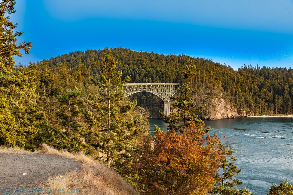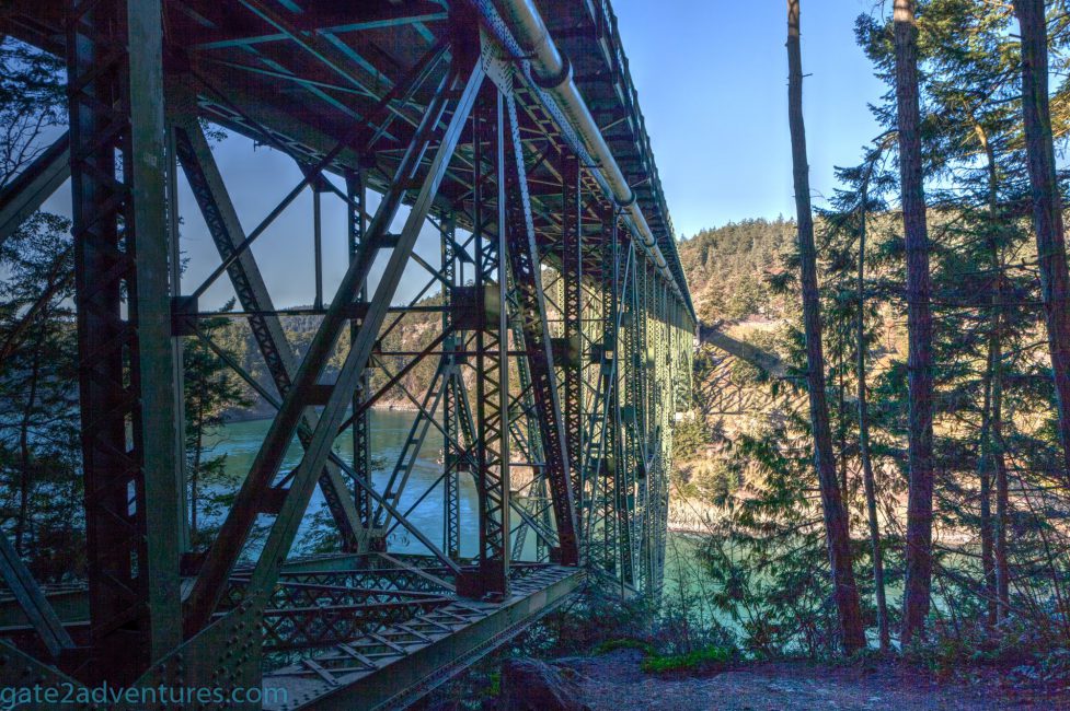 If you take this beautiful drive you will have to cross the Deception Pass Bridge. Because I had a tight schedule I wasn’t able to take any of the longer trails. However, I walked both bridges and took a bunch of photos from the sidewalk along the bridge and from the trail leading down to Macs Cove. There is a BBQ pit down here in a small open air cabin and ample seating along the beach area. If you want, you can almost drive all the way down here. There is a parking lot only a few feet away but you need to pay the daily fee or be in possession of a Washington State Discovery Pass.