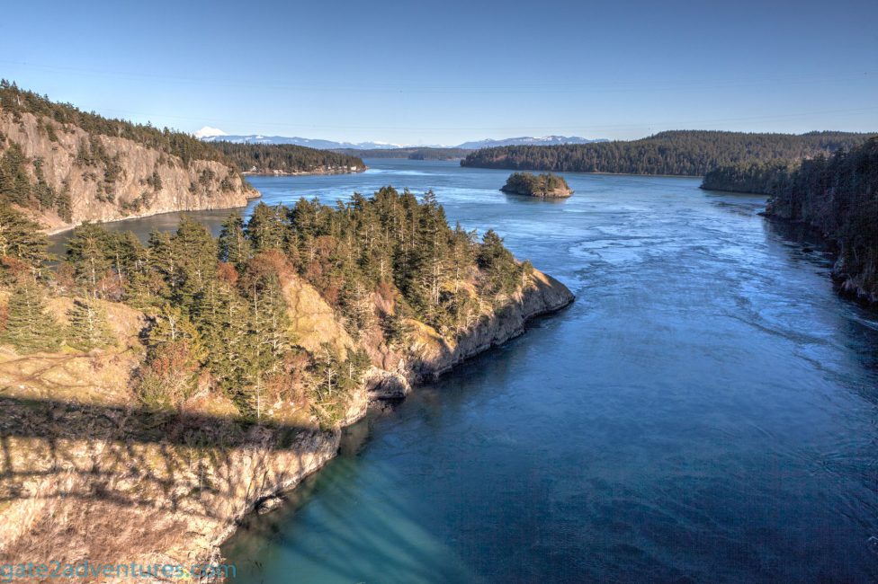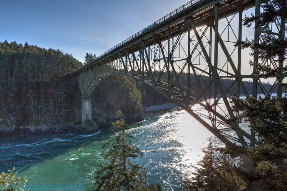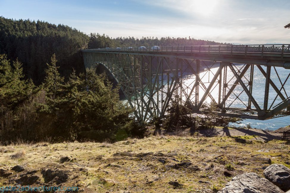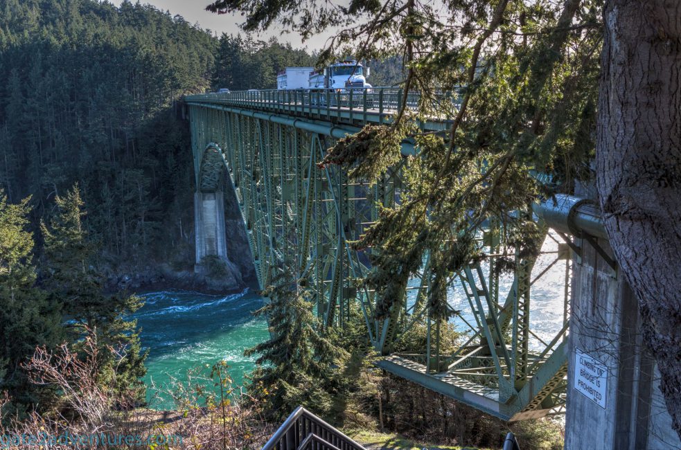 Free parking is located coming from the north just before you go on the bridge of to the right. The next parking possibility is on Pass Island to your left after you crossed the first span coming from the north. It’s just a small turn out and might be full. There is a historical marker and small observation platform on Pass Island. Be careful here when you try to make a left. Don’t stop traffic rather keep on going and turn around at the next parking lot if there is a lot of traffic. That’s also the parking area where you have to pay a fee to park. If you are on a vacation trip and plan to visit more sites in Washington State you might want to look into getting a Discover Pass for the Washington State Parks.