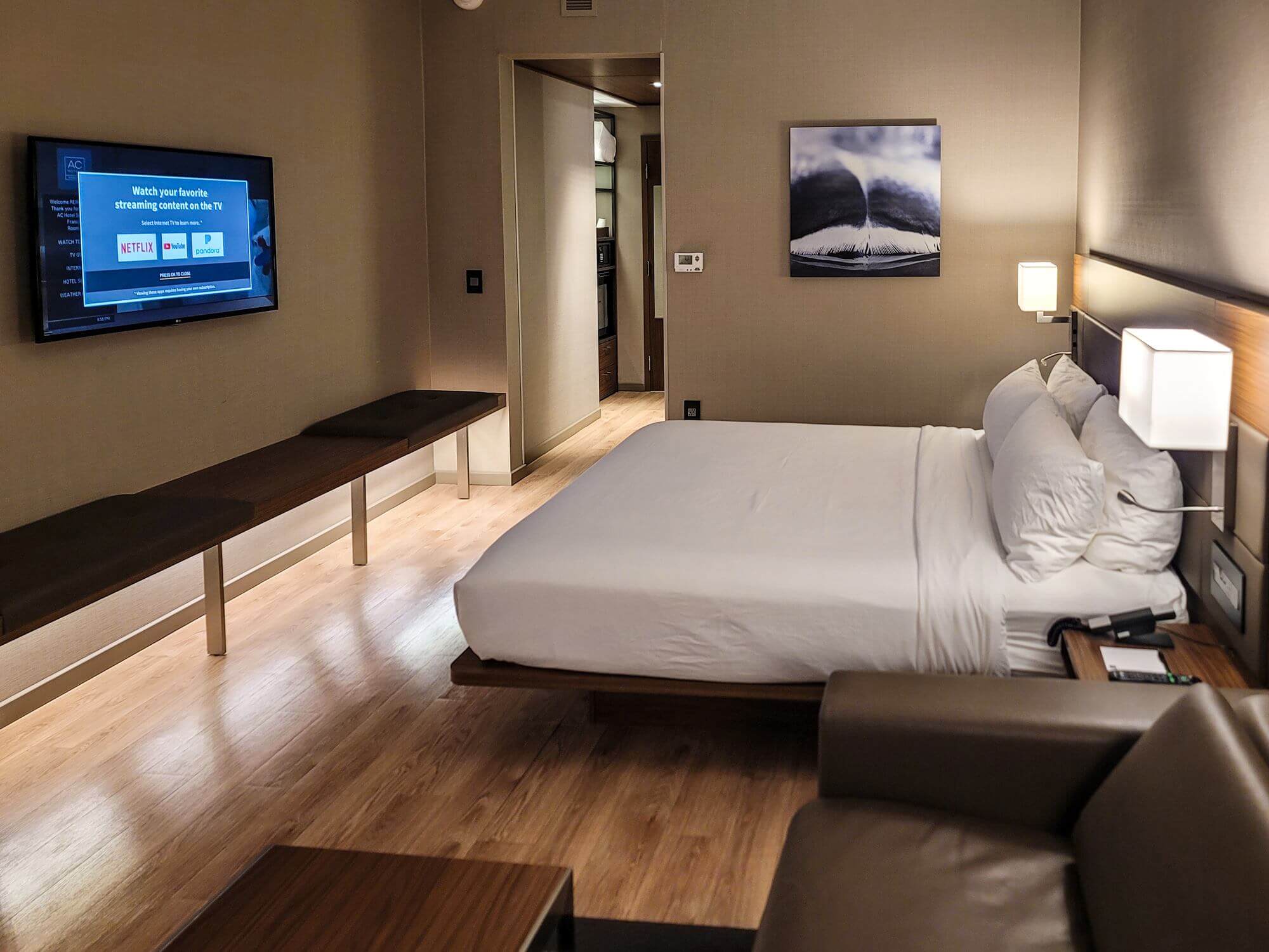 If you are visiting any of the bio-tech companies or offices in the near vicinity, this is a great place to stay. You can even walk to most of them and don’t even need a car. This was also my first time in an AC hotel. Not bad at all. I like this brand.
