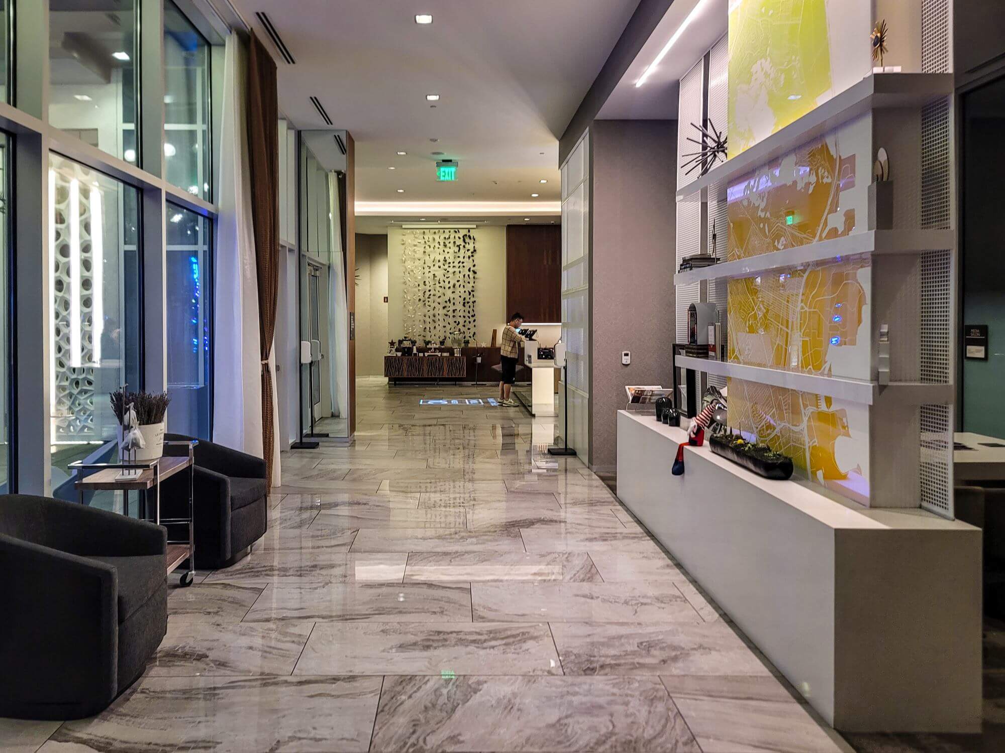 The AC Hotel San Francisco Airport/Oyster Point Waterfront is a 10-minute drive away from the SFO rental car center. It’s pretty easy to get here and the hotel sits in the heart of many big bio-tech companies. AstraZeneca is right next door to the hotel. Most of the buildings in this area are brand new as well as the campus area. Gives you some nice areas to walk through and enjoy the architecture of the different buildings. Right across the street from the hotel you have access to the Bay Trail, which can take you along the bay in either direction. It’s a very quiet area and the hotel itself sits on a dead-end street. Therefore, there is not much traffic. The 101 freeway is not far away but I couldn’t even hear the traffic noise in my room. Since the hotel sits next to all these corporate buildings, the area is pretty much dead on the weekends. You only see a few people out walking the trails, but that’s about it.