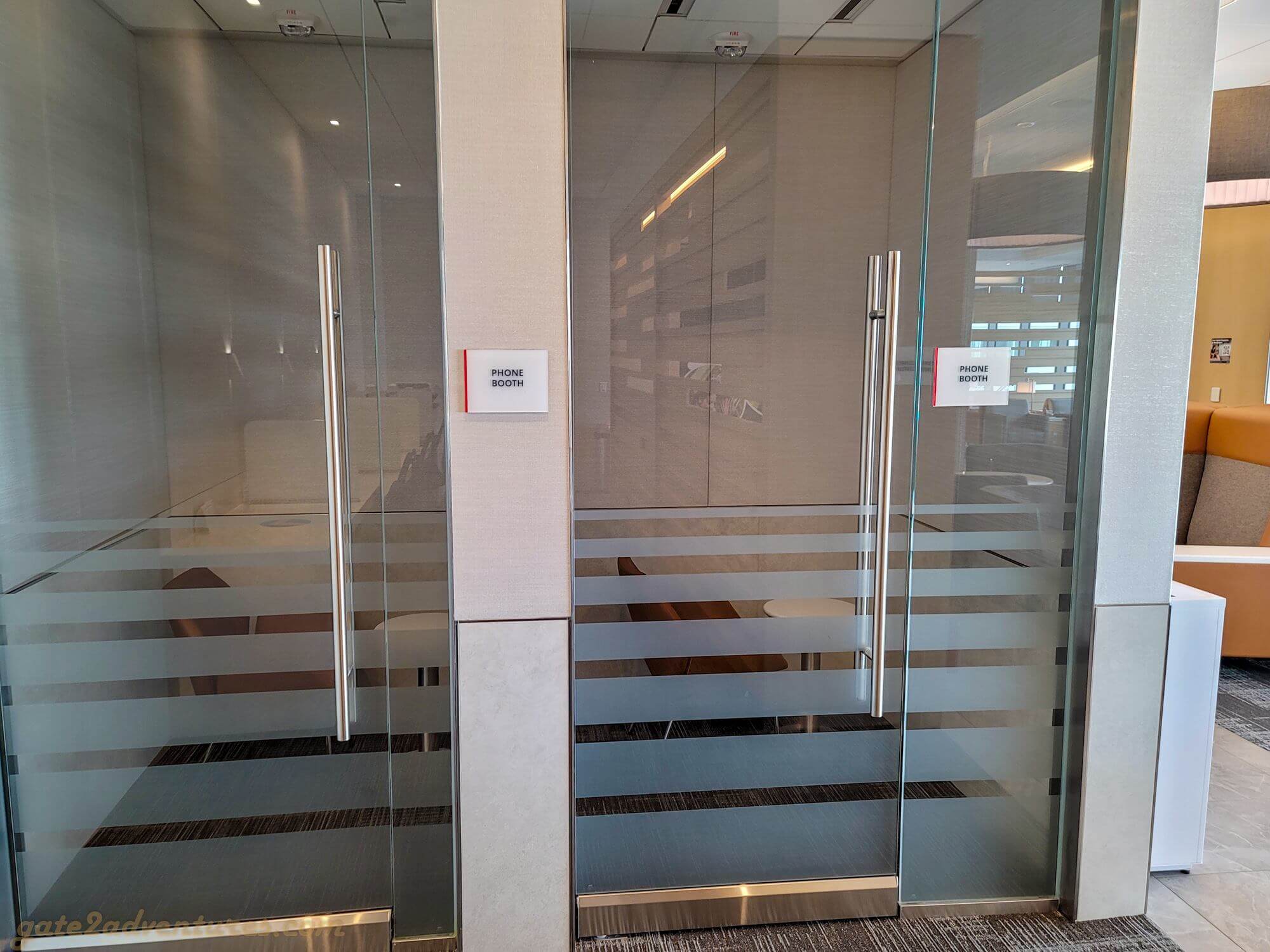 Next to the business center are two (cell)phone booths, if you have to make private calls and don’t want anyone to listen in. At the very end of the lounge is a VIP suite with a six-person conference room that can be rented out for business meetings.
