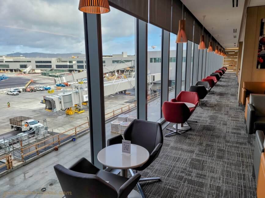 The first thing you probably notice is the floor-to-ceiling windows, which run the length of the lounge. This makes the Admirals Club very bright open and airy. These windows also offer a great view of the airfield and the International Terminal. Once travel picks up again, you can see here many of the big international carriers and many of the A380 as they can only fit on that side of the International Terminal.