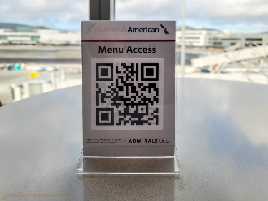 The bar itself has a good variety of drinks which can be purchased for a nominal fee. You can access the drink and food menu by scanning a QR code which is placed throughout the dining area. This helps reduce touchpoints for guests. The barstools have been removed to give the bartender some extra space. Seats throughout the lounge have “Maintain Distance” placards on them. If you see them on the chair or lounger, that means this unit has been cleaned and sanitized. Once you pick a spot, remove the placard and place it on the table or a stand next to your spot. This helps staff identify used areas and they can clean them once you leave. American Airlines does its best to keep you safe and healthy. There are multiple hand sanitizers located throughout the lounge.