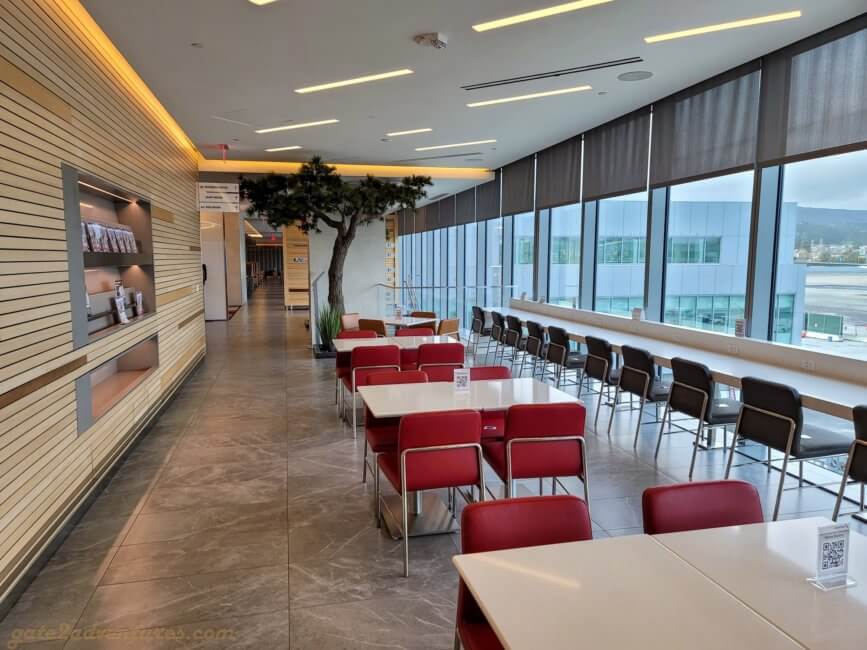 There are plenty of power outlets at almost every seat. Outlets are a little bit limited in the dining area, which I think is a good thing, as it keeps people moving out of the space to open up seats and tables for other guests to enjoy a snack. Of course, this lounge comes with complimentary Wi-Fi. Usually, the agent will ask you during check-in if you need the Wi-Fi code or if you already know it.