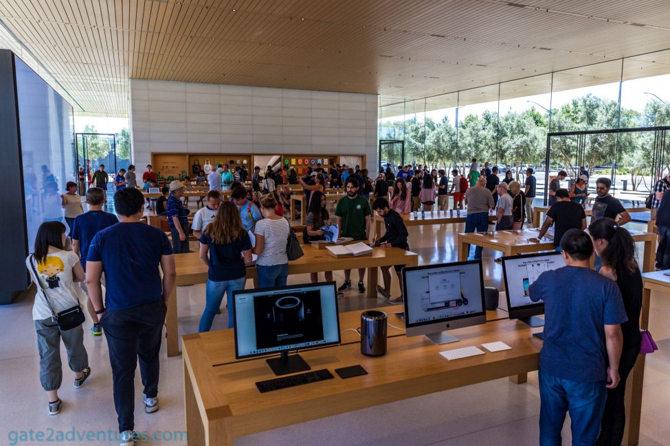Apple’s Flagship Store on Union Square in Downtown San Francisco is about a 50-mile drive north from the Apple Park Visitor Center. Parking nearby can be very hard to find, especially during the week and also super expensive in the Downtown area. Best way to visit is to park your car at the BART station in Millbrae near the San Francisco International Airport and take the train to Powel Street Station. From there it’s just a short walk to the Apple Store at Union Square.