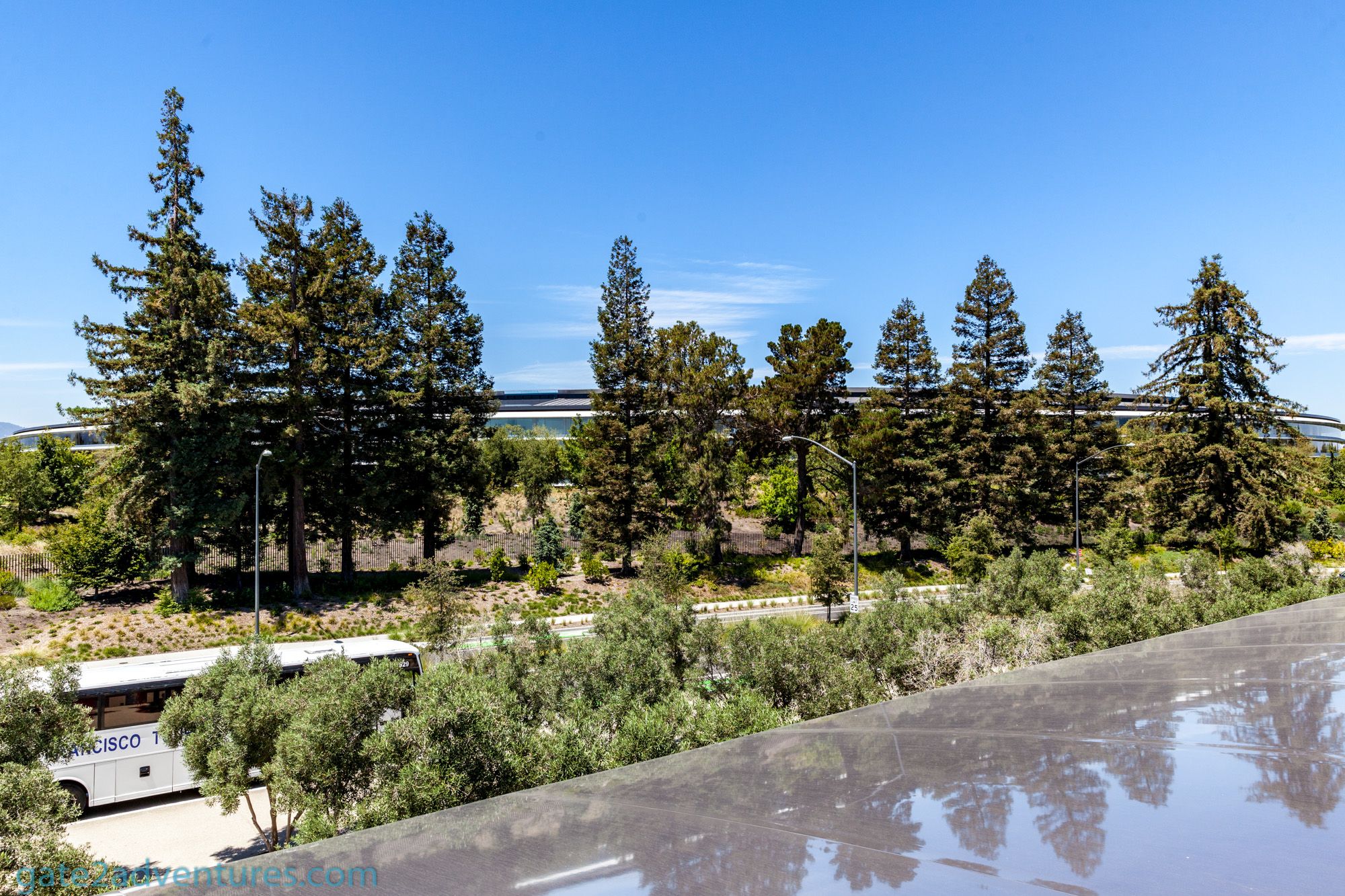 If you still can’t get enough of Apple. Don’t constrain your visit just to the visitor center. Walk down on North Tantau Avenue. You get to see the entrances to the “spaceship” and the tall berms planted with trees and scrubs to hinder you from getting a glimpse of what’s going on inside.