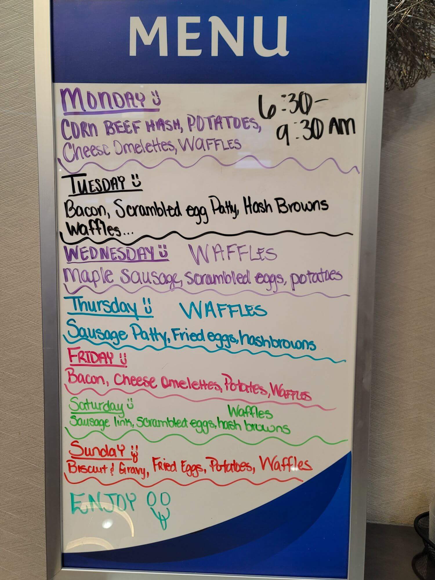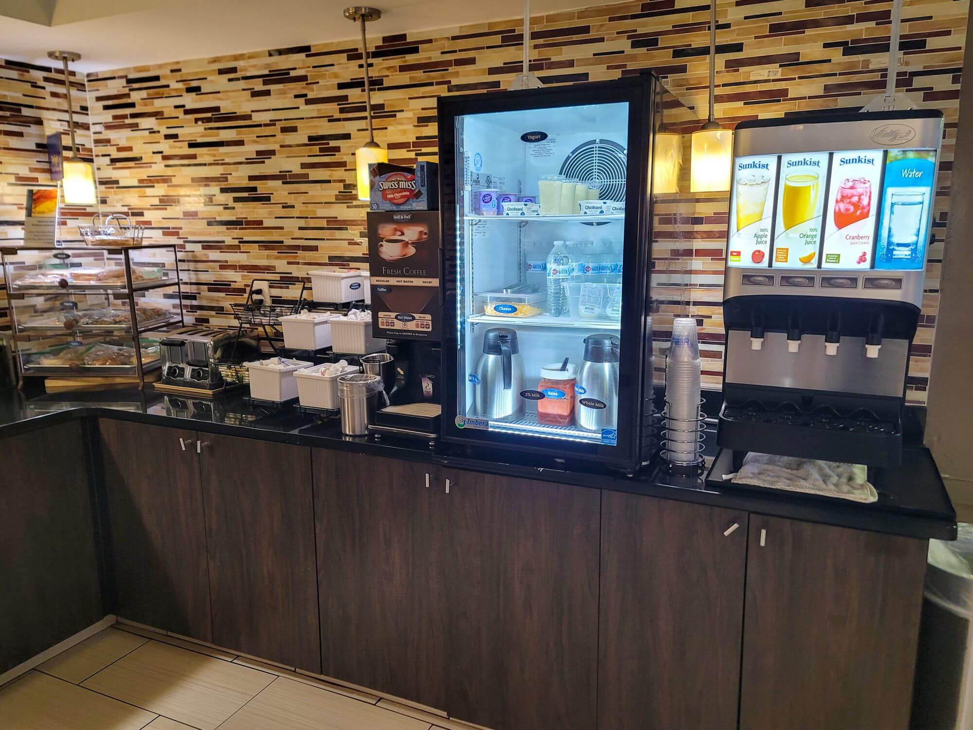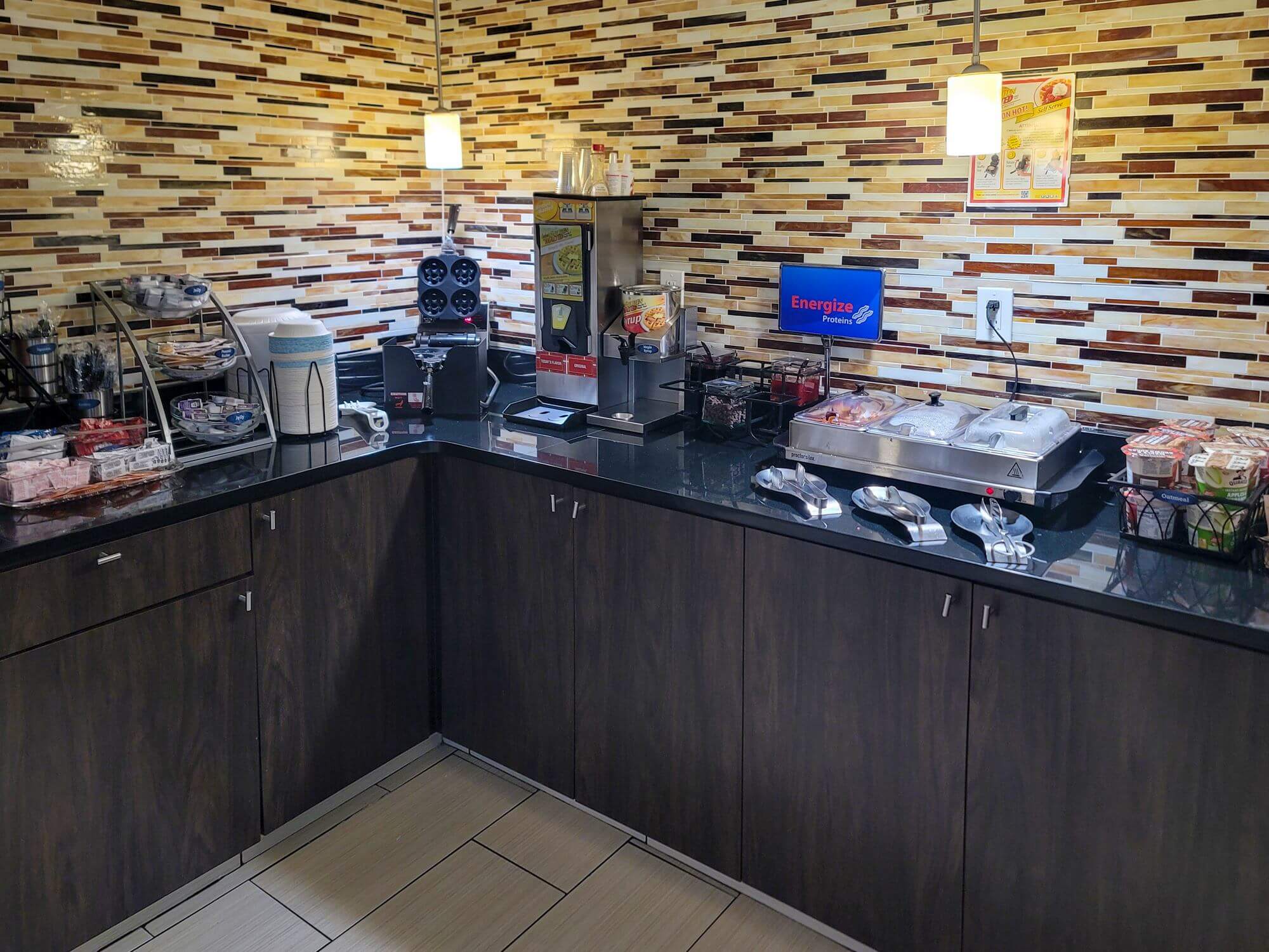 The breakfast was mediocre. The hashbrowns were a little burnt, as were the eggs. Besides that, the Best Western Center Inn offered a variety of the usual continental breakfast items like cereals, yogurts, toast, fruits, different juices, and coffee. A sign in the lobby shows that it looks like this hotel offers a rotating breakfast service. You won’t get all the same items every day. The hot options will be rotated through different options each day. Besides the burned hashbrowns and eggs, the breakfast was ok.