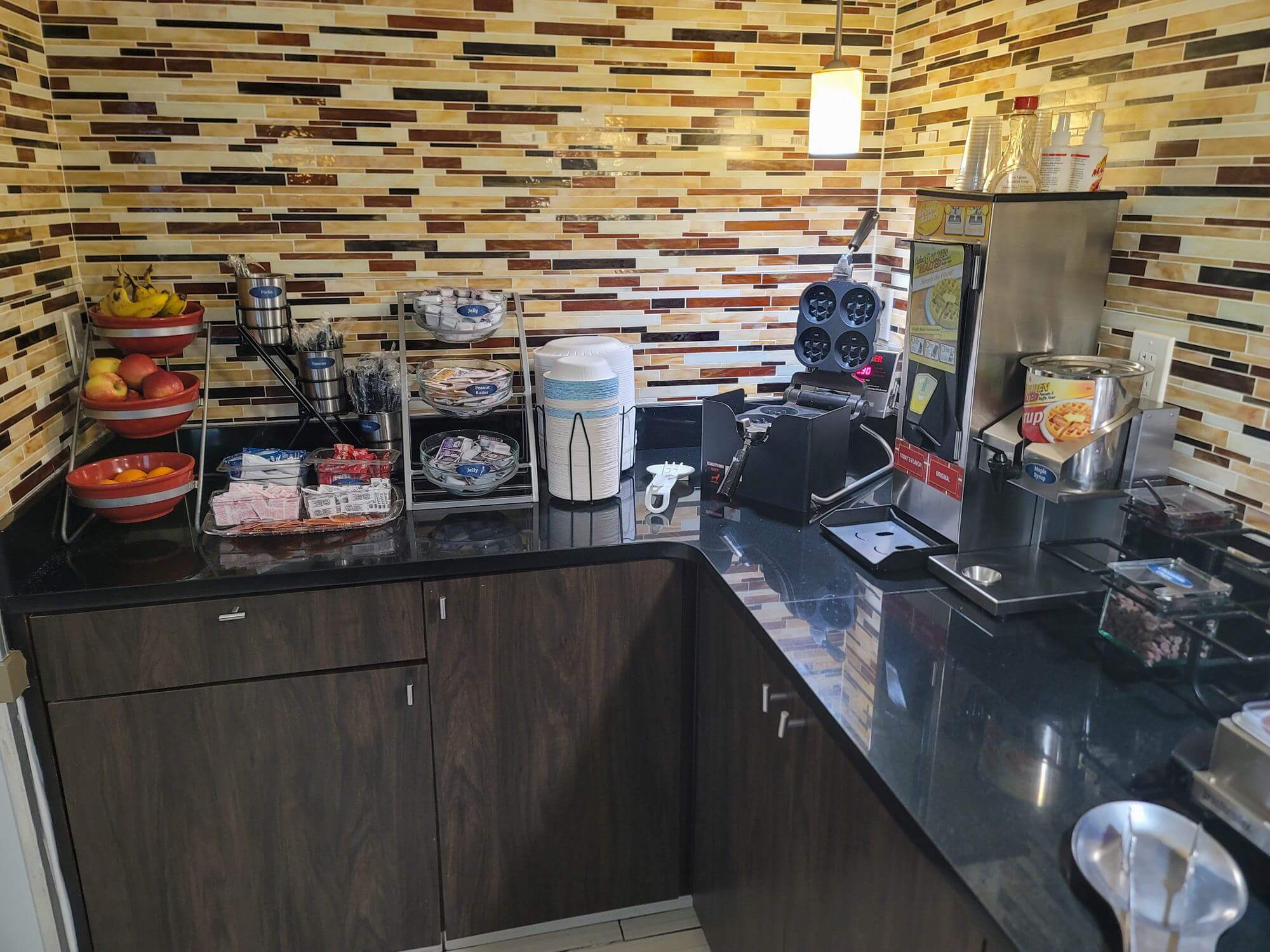 I walked into the small lobby space. Two other people arrived just before me and the agent on duty took care of them. As it was my turn, I provided my credit card and I.D. but they were shocked when they saw my foreign ID because they couldn’t scan it. For whatever reason, they scan every ID. It feels kind of like you are trying to buy alcohol or cigarettes. No, you are just checking into a hotel. It’s also not a state law, but it seems to be an issue with lower-end hotels. Never had such an issue at a Hyatt or Marriott, or even a Holiday Inn. Anyway, she decided to make a photocopy of my ID and handed me my room keys shortly after that and informed me about the breakfast hours.