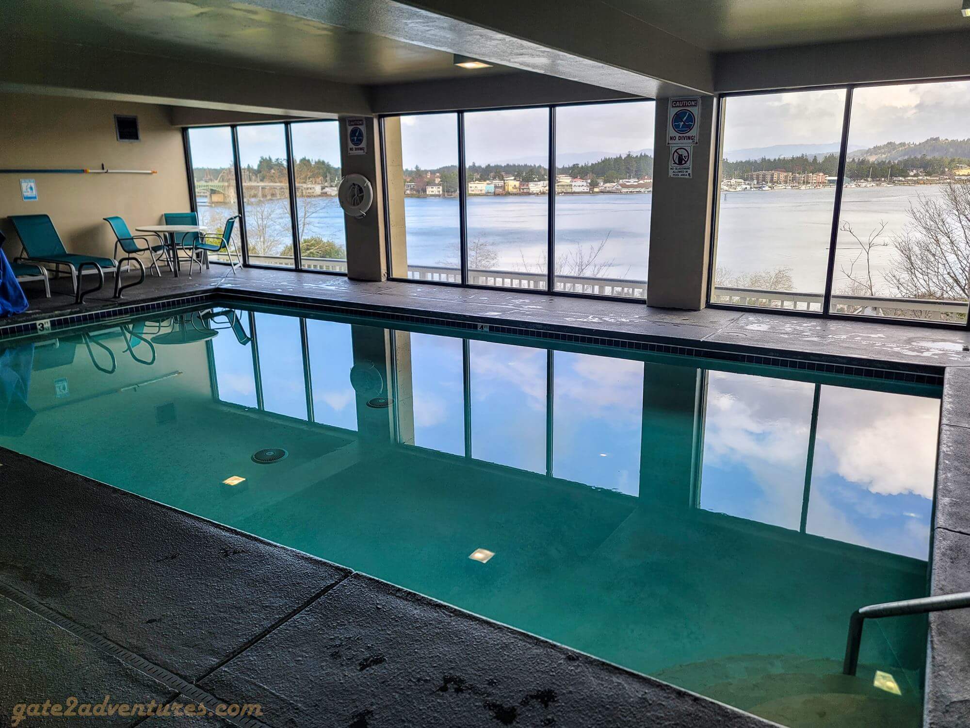 The Best Western Pier Point Inn is located right of Highway 101 which runs along the Oregon Coast. The hotel is situated just outside of town before the Siuslaw River Bridge when heading north. It sits on the river front and rooms facing that way have a great view of the river, bridge and the waterfront of Florence.