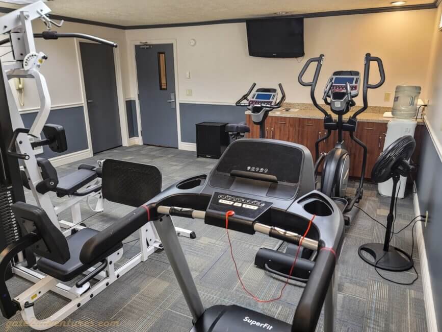 The fitness center is located on the same level as my room, just one set of stairs down from the lobby in the main building. It is a rather small fitness center but has a decent selection of workout equipment but no windows to the outside.