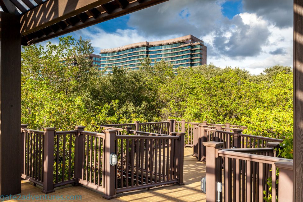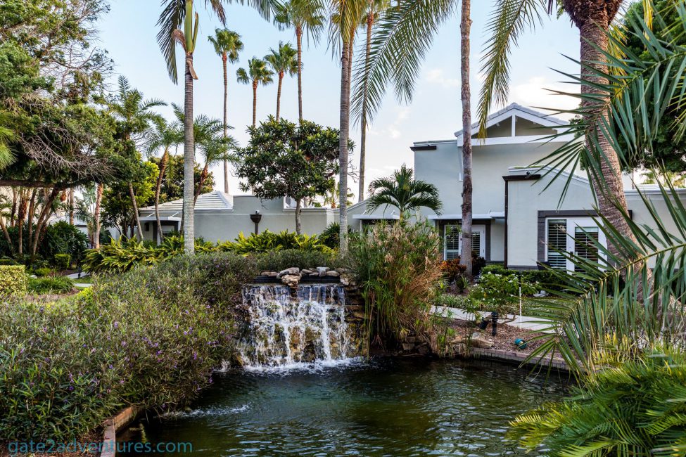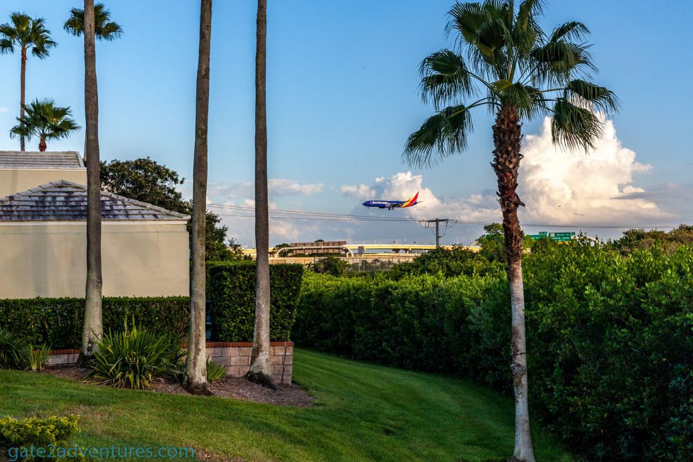 There is a big parking lot right in front of the Casitas and I was lucky enough to get a suite facing the bay rather than the parking lot. Also, my suite, Room 2028 dubbed “Santa Rosa”, was just a straight walk up from the parking lot, along the little Koi Pond. However, the view itself is not worth that much, as all the scrubs and bushes in the backyard hinder the view of the bay. However, you get to see the planes coming in to land at the nearby Tampa International Airport. Besides the small outdoor patio with two chairs and a small table, you have a little bit of green available but this area isn’t really intended to be used. Just a few feet behind the bush line is the Fish Creek.