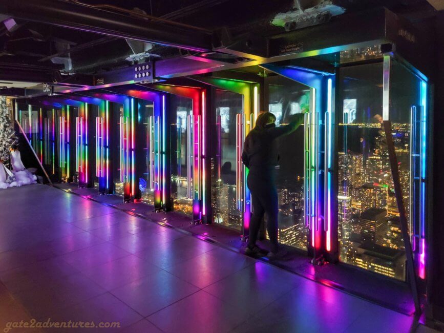 Be courteous about other visitors, enjoy the view and then walk on to the next spot so other people can enjoy the view as well. I also would encourage everyone to not touch the windows as this keeps them clean and clear for even better pictures. Walk around the observation deck and get a lay of the land here. Don’t forget to check out the skywalk. It’s an open-air section of the building where you can feel the wind and temperature up here. Unfortunately, there is mesh over the whole section so nobody can jump out, which also hinders you from getting good pictures.