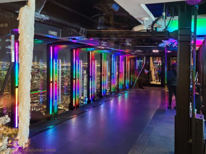Depending on the day, the best time to visit is about 2 hours before sunset. This gives you enough time to enjoy THE SKYDECK EXPERIENCE through which you will walk before taking the elevator ride up to the observation deck. Enjoy some daytime views before you watch the sunset and the city lights turn on. Once you have your ticket, you will have to go through a metal detector and your bag has to go through an x-ray machine, just like at the airport.