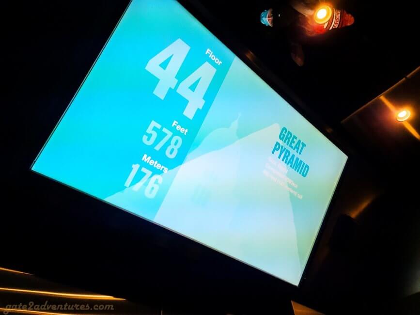 While riding the elevator to the top, you can watch a video on the displays inside the elevator with more information. It is a bit of a wobbly ride going up. The elevator runs at a top speed of 1,800 ft/min (20 mph; 9.1 m/s). The car shifts a little bit from side to side as you go up. Don’t be scared this is normal, but it could be smoother.