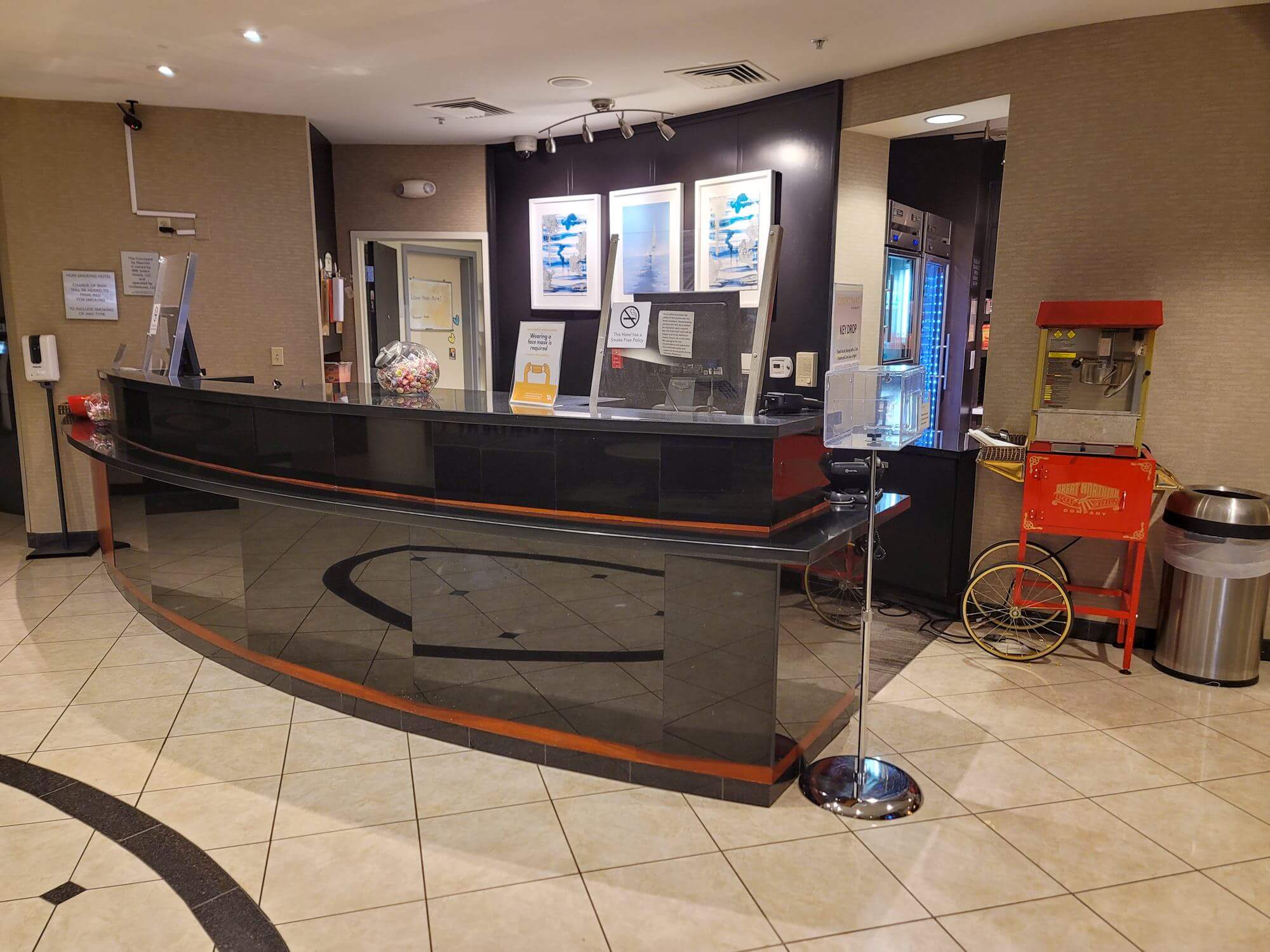 I pulled up to the front desk and parked at the main entrance. The hotel still required face masks for guests and staff members. Check-in was, as usual, quick and easy. I had to show my ID and credit card and was given my room keys. I also got asked if I want the bonus points as my loyalty gift. Well, it was the only choice they gave me and I would have taken points either way. One elevator is located around the corner down the left hallway.
