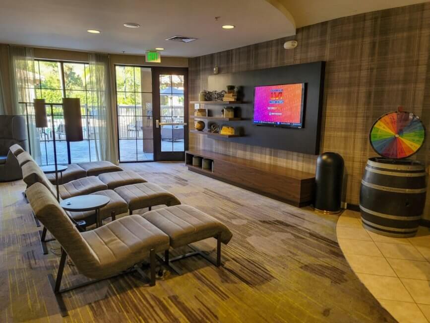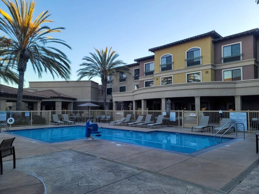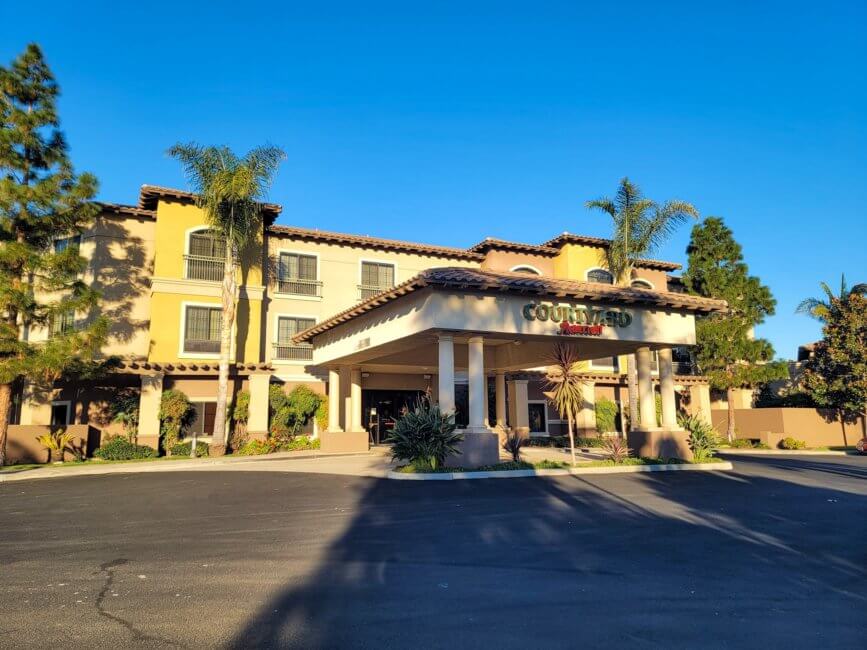 The Courtyard by Marriott San Luis Obispo is located on the south end of the city. It’s located close to an off-ramp of Highway 101. The main highway through the area. The property is far enough away from the highway so that there is no issue with road noise. In the same area are two more hotels. A Hampton Inn & Suites by Hilton and a Motel 6.