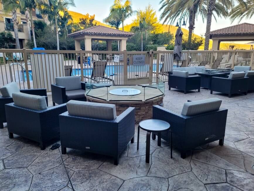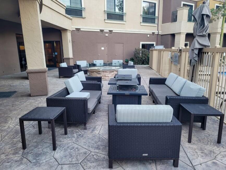 Outside of the pool area, towards the lobby area of the hotel, you have plenty of outdoor seating. There is a firepit inviting you to hang out during colder nights to stay warm. Overall a very inviting space to relax.