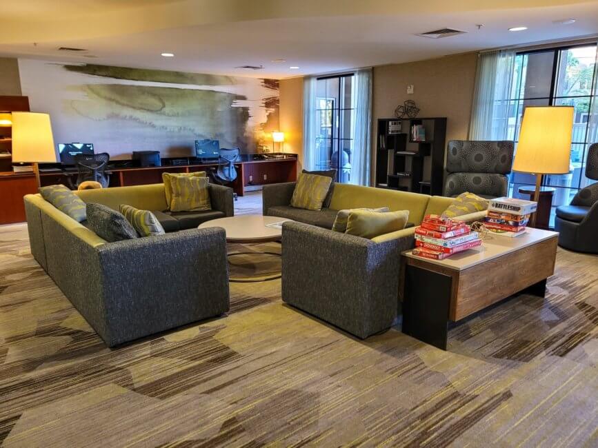 The area next to the business center has a living room feel to it. It comes with plenty of comfy seating options as well as board games to entertain your kids or just yourself.