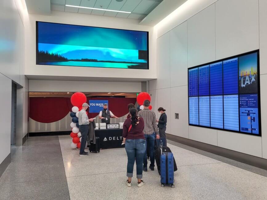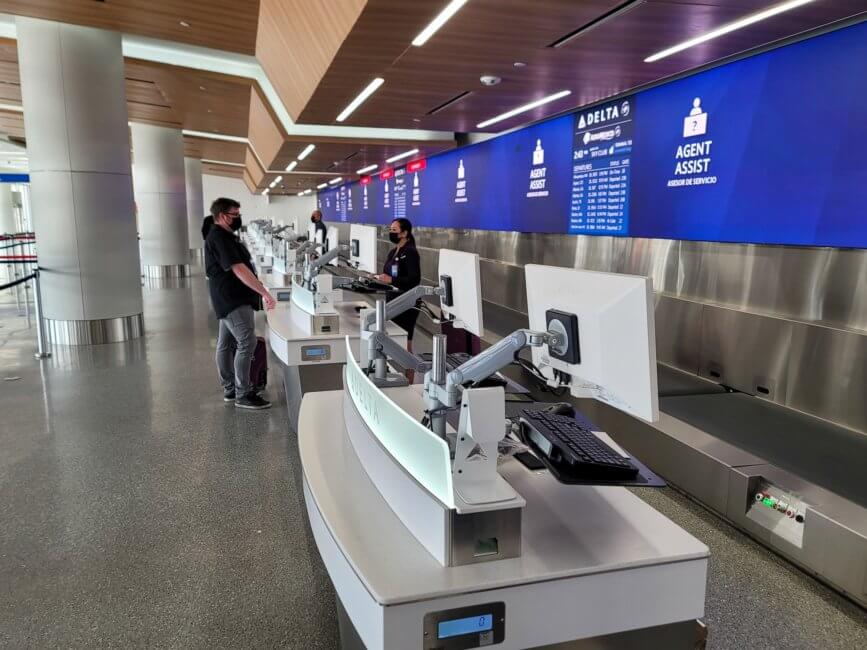When you turn to your left, this will bring you to Terminal 3 and the International Terminal once the connector is finished. Heading to the right will get you to Terminal 2 and the new Delta Sky Club. My mission was to head towards Terminal 2 to get to gate 22 for my simulated departure. However, my journey ended right before I got to the actual terminal as there is still construction going on. We had to drop a card in one of the boxes labeled with different experience levels to give feedback on how we did checking in, passing security, and getting to the gate as part of our passenger profile. After taking some pictures and grabbing a snack our simulated arriving journey started.