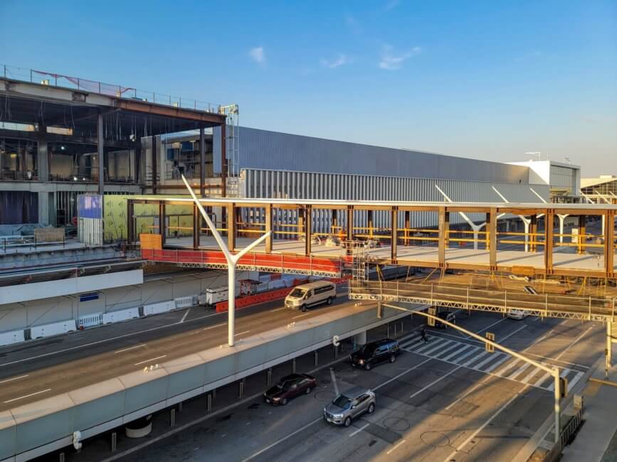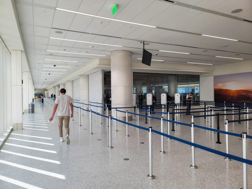 You will get your usual security checkpoints for regular passengers, SkyPriority, Clear, and TSA Precheck. As mentioned earlier, the consolidated security checkpoint will now allow you to enter Terminal 2 and 3 without having to reclear security and in the future, you will also be able to reach the TBIT from here. The signs are already up, however, the Sky Way connecting the Headhouse to TBIT is still under construction and is scheduled to open in Spring 2023.