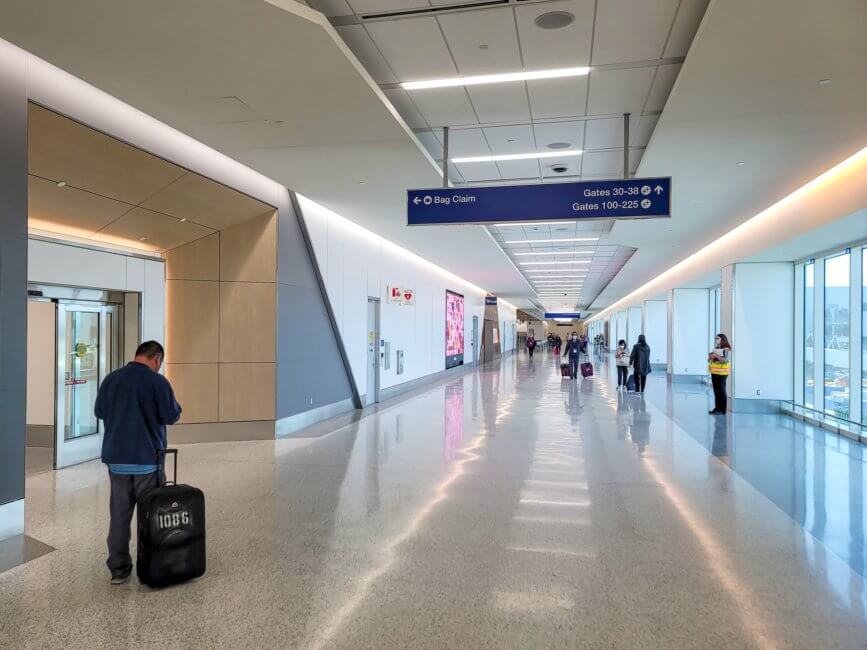 However, right now you still have to go back upstairs to the ticketing level if you want to catch a shuttle bus to a nearby hotel. Yes, that’s LAX for you, not Delta’s fault. The elevators are next to the escalators which you used to get to the baggage claim area.