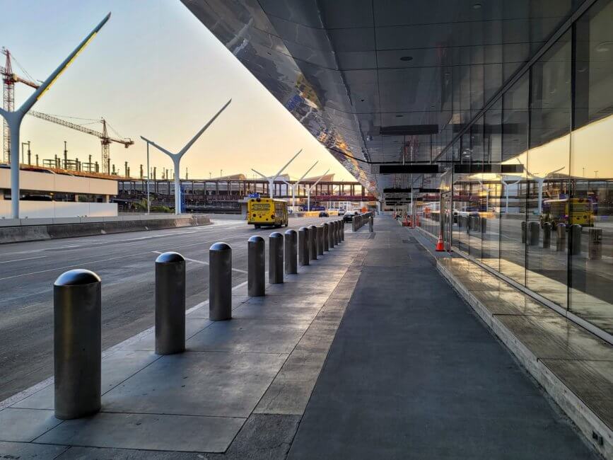 As a departing passenger, you will arrive on the upper level of the Terminal. Passengers will appreciate the wider curb for unloading and getting into a light-filled departure hall. Once the automated people mover system at LAX is completed, passengers arriving via the APM will have a bridge spanning over the upper driveway and connecting near the new headhouse to get to the Check-In counters.