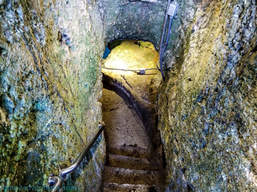 After we checked in, my instructor and I headed to the heated pool to get my scuba diving skills done. Then – the moment of truth – we headed down the small stairs to the cave. We were dressed in full scuba gear, with our scuba tanks on the back and our fins in our hands. It is not easy to walk with the heavy gear through the tiny opening. I was totally not used to that.