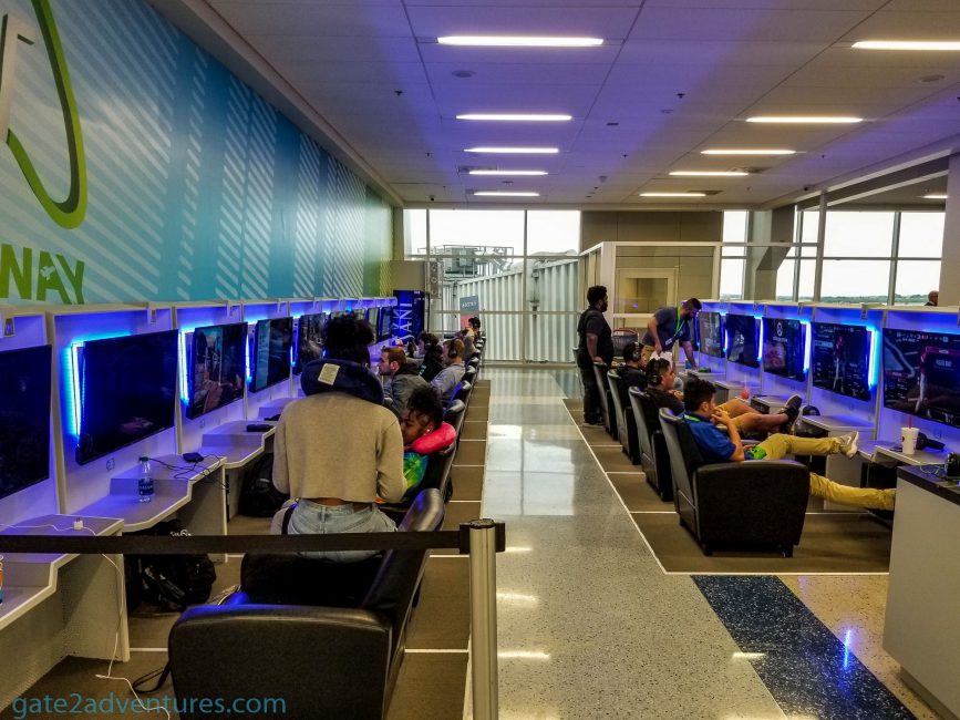 Pricing is $10.99 for 30 minutes and $34.99 for 120 minutes. An unlimited time plan (during one visit) is available for $44.99. I am a gamer myself. Not as much anymore as when I was younger but still playing casually. I personally wouldn’t use the lounge. The main reason is probably that I am a PC Gamer and don’t play on consoles. Second would be the price. For $25 you usually get an airport lounge day pass which gives you access to food and time to sit down and relax. In my case even time to game, as I carry my gaming laptop always with me. On the other side I am not that much into gaming anymore and for some of the plans, I can buy a feature game. But these are just my two cents. During my visit at both lounges, there ware about 2 dozen gamers at both lounges combined with the Terminal E location being the busiest one.