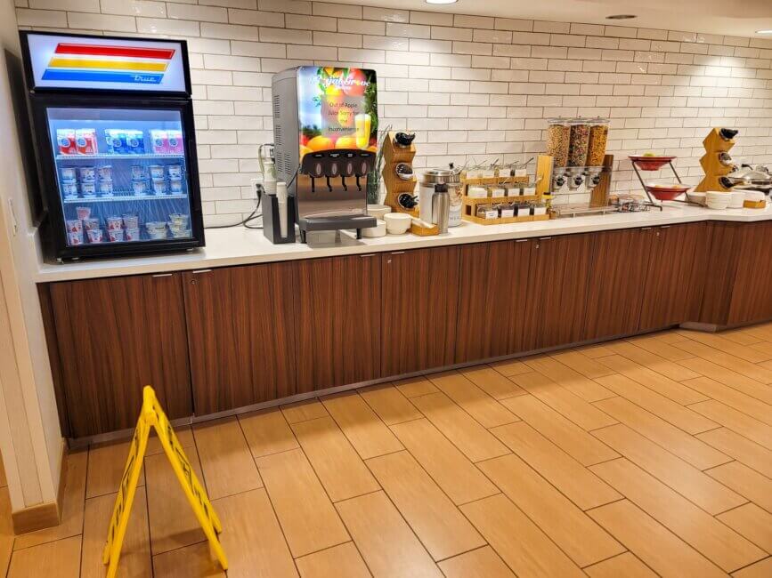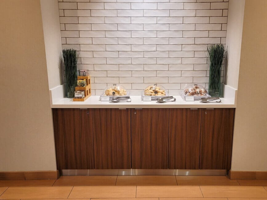 Breakfast is in the lobby area and is complimentary for all guests. There is a large buffet area with the usual continental breakfast items. Overall, the buffet is nothing special but it’s not bad either. Staff were quick to replenish items, only the apple juice was out of stock during my stay. Lots of dining tables are available in the breakfast area, which should make it easy to find a spot in the morning. But as always, show up for breakfast early as it can get crowded if the hotel is fully booked and people tend to sleep in, especially on weekends. Coffee is available in the lobby 24 hours a day.