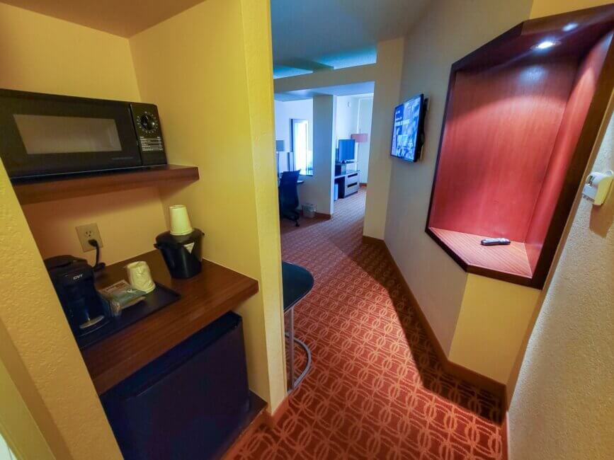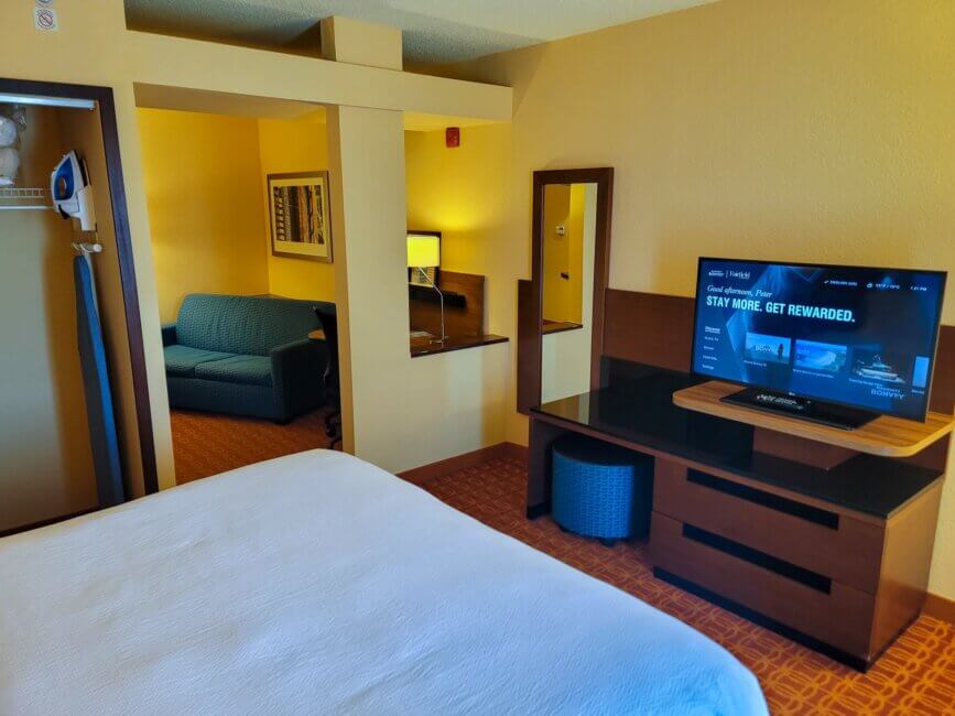 I was staying at the Hyatt House Austin/Arboretum and had to extend my stay for another week. Unfortunately, the hotel was sold out over the weekend, and I was unable to extend my stay. I was hoping for some last-minute cancellations, but nobody cancelled. I wanted to stay in the area and looked for alternatives. There was a Hyatt Place not far away, but I ultimately decided on staying at the Fairfield Inn & Suites by Marriott Austin Northwest/The Domain Area. They had cheaper rates than Hyatt Place and I had two Chase offers and one Amex offer I could take care of when staying at the Fairfield Inn. To use all my offers, I created multiple consecutive reservations with always two days to get over the minimum spend amount required for the offers. This plan worked out fine. I didn’t have to move rooms, just swipe the new credit card and “check in” again. As I had to extend my stay yet again, I decided to book the “suite” to be able to review that room as well. Prices were also coming to normal levels again as I paid the last few days around $240 at either the Hyatt or Marriott property here.