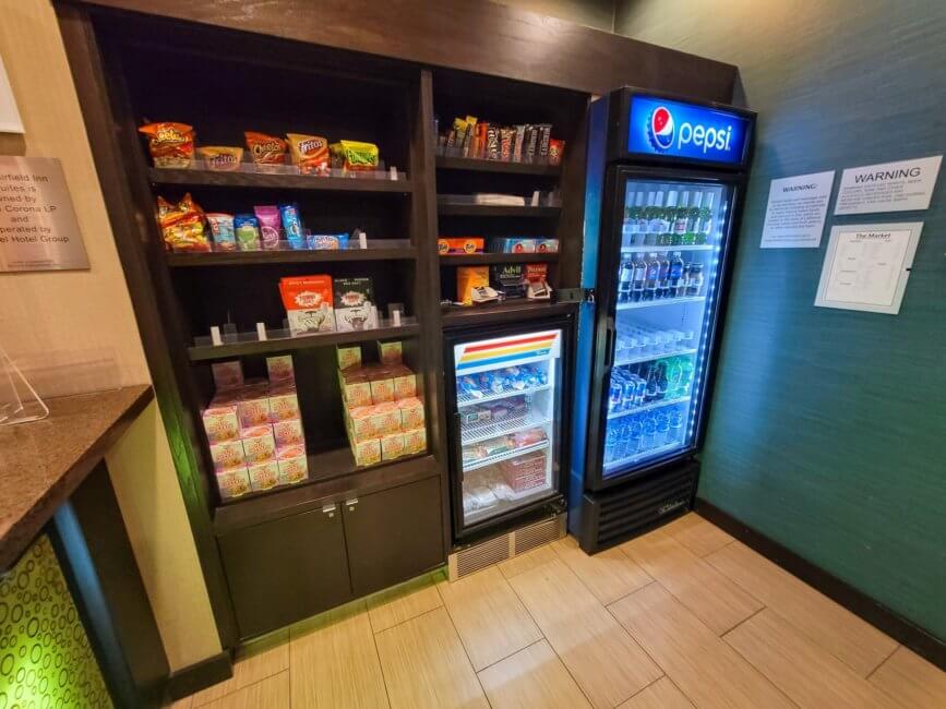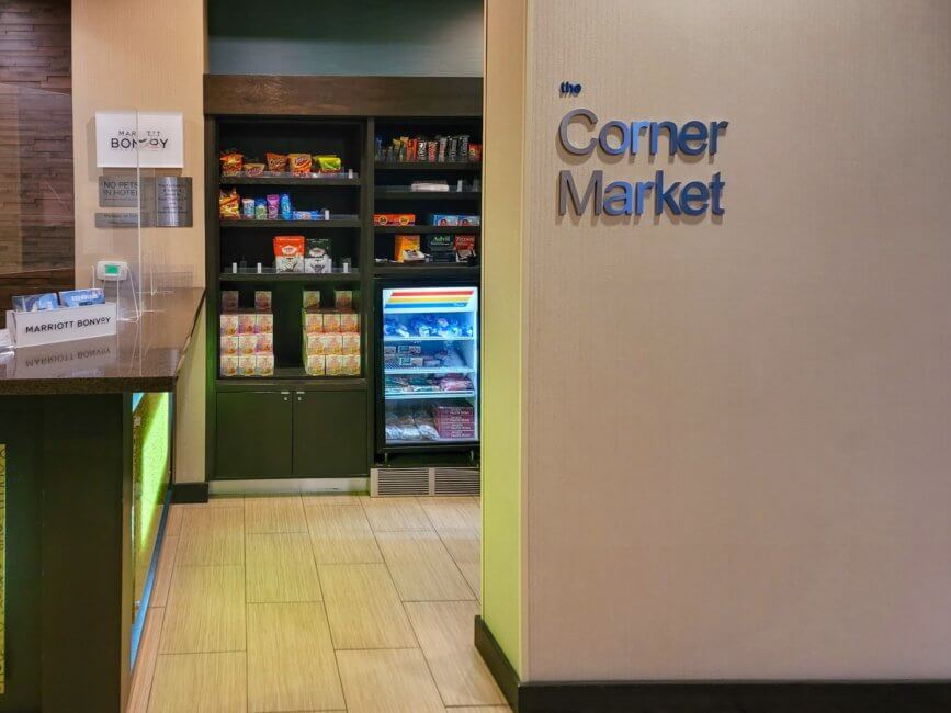 Next to the front desk is the Corner Market, where you can find snacks, drinks, and some other stuff you might need for your stay. The market is open 24/7 as well.