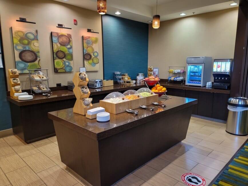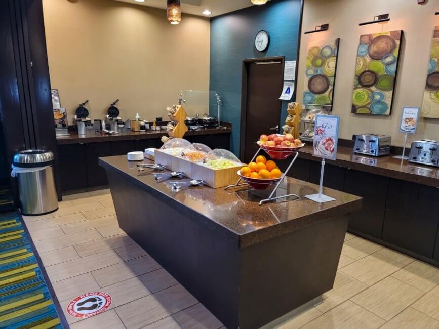 I was very disappointed by the breakfast, to be honest. I just stayed at the Fairfield in Santa Maria not too long ago and they had a great continental breakfast. Here you have a subpar breakfast experience. No eggs or bacon. The only “warm” food you get is heated breakfast muffins bought in bulk. Not very tasty. I would almost say the once you get at Mcdonald’s tastes better. Sorry, I forgot to mention oatmeal is available as well. There is no toast either. You get some fruits, yogurts, cereals and that’s about it. Not much to choose from to have a good start on a busy day.