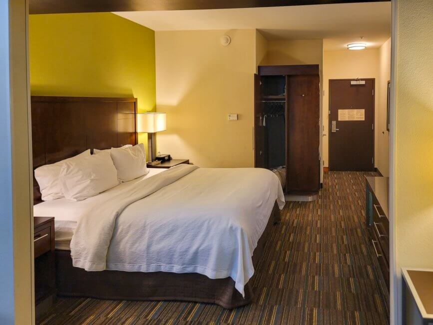 Because of the whole room key dilemma, I ordered food delivery and had them drop it at my room door to avoid having someone go with me to let me in my room again. Of course, as usual, the restaurant forgot to put utensils in the bag and I had to go downstairs to pick some up from the breakfast area. At the same moment a couple was checking in and they were heading to the same floor as me. The guy from the front desk told me that he will let them in first and then come over to my room. When he unlocked the room door for the couple, he unlocked the wrong one. He gave them the right room number but he just did unlock an already occupied room. The only thing I heard was a bunch of “sorry, sorry, sorry”. Then he double-checked with the couple and opened the right room door which was on the opposite side of the hallway. That was a sign for me to make sure my deadbolts are all set when I am in the room.