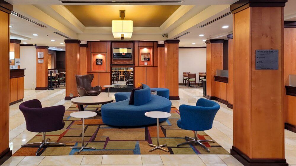 The lobby space in front of the check-in counter has some seating options to hang out. Perfect to meet up with the rest of your party before heading out.