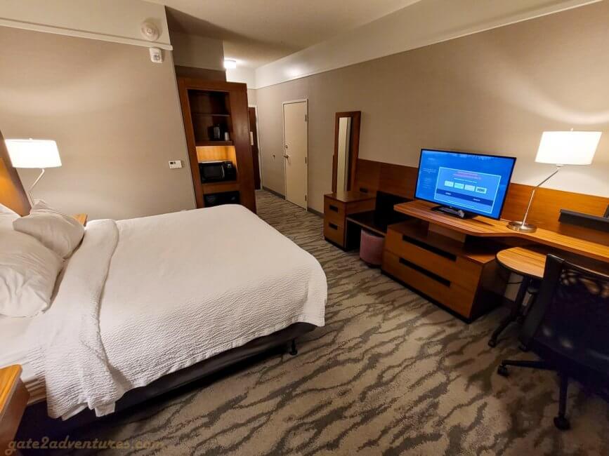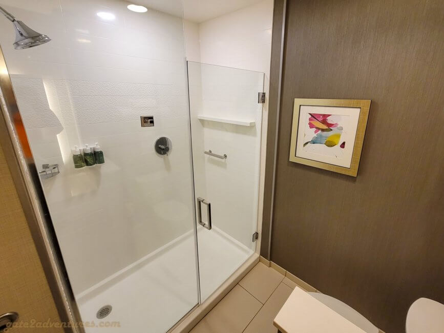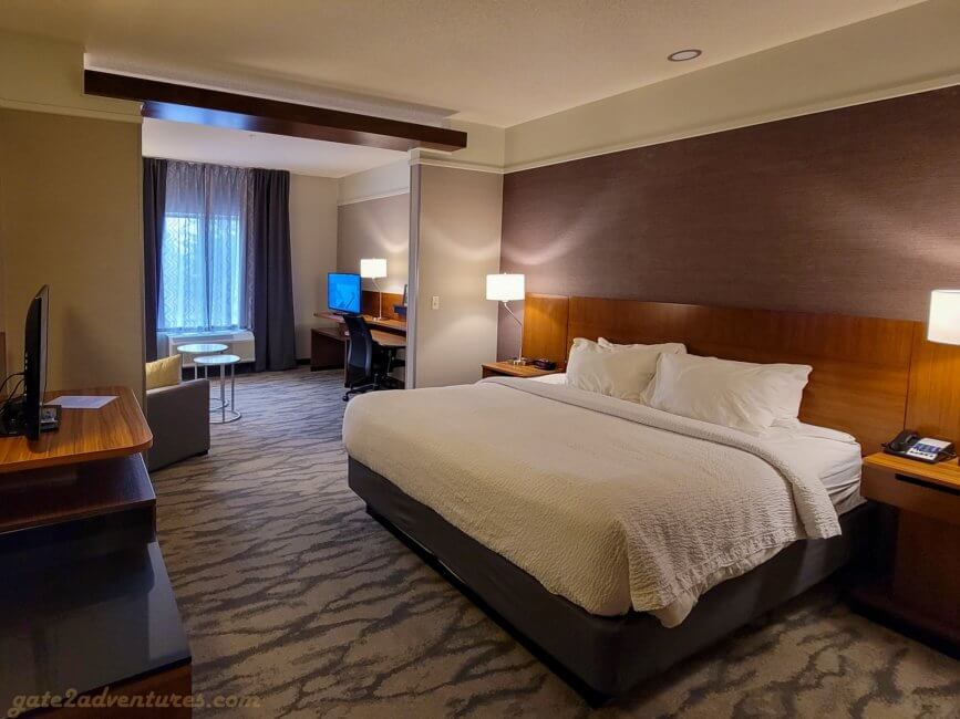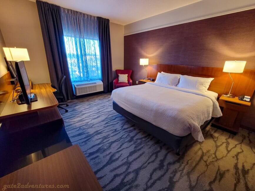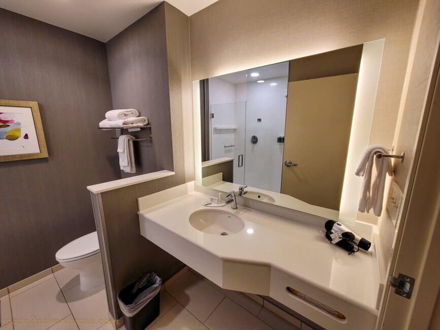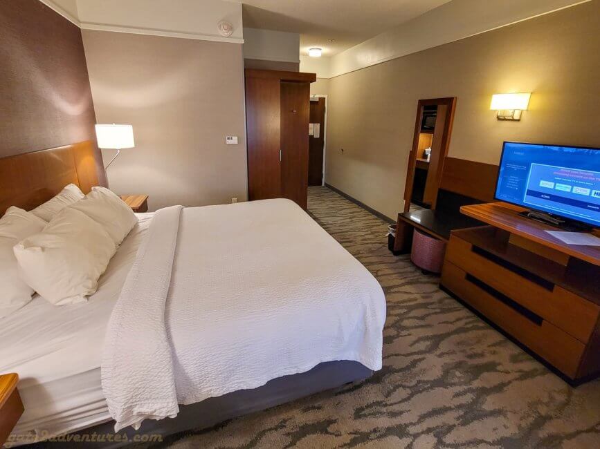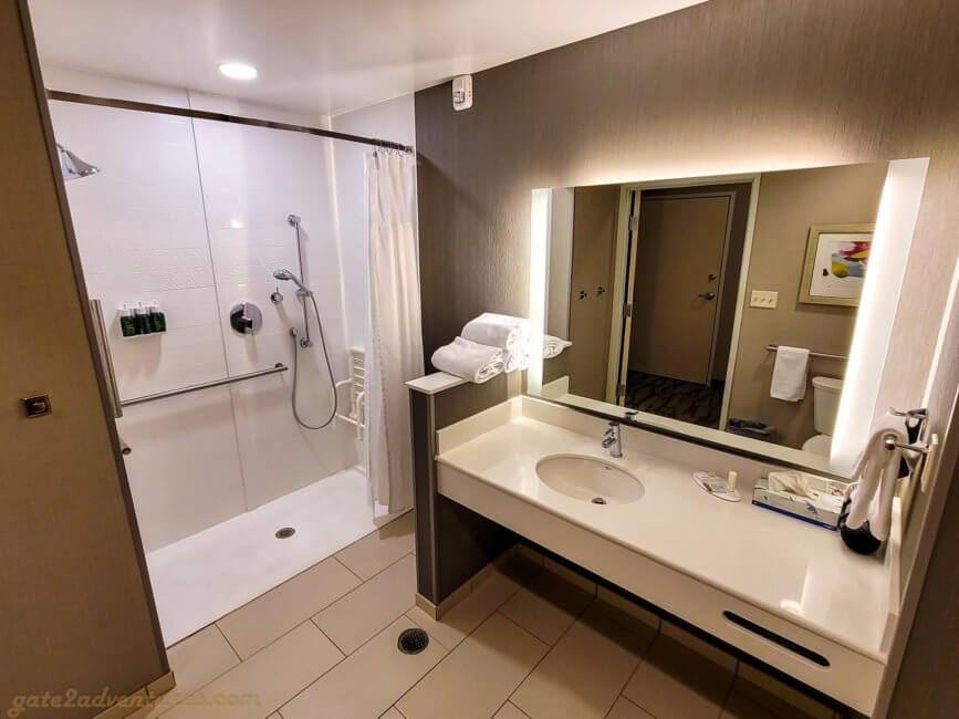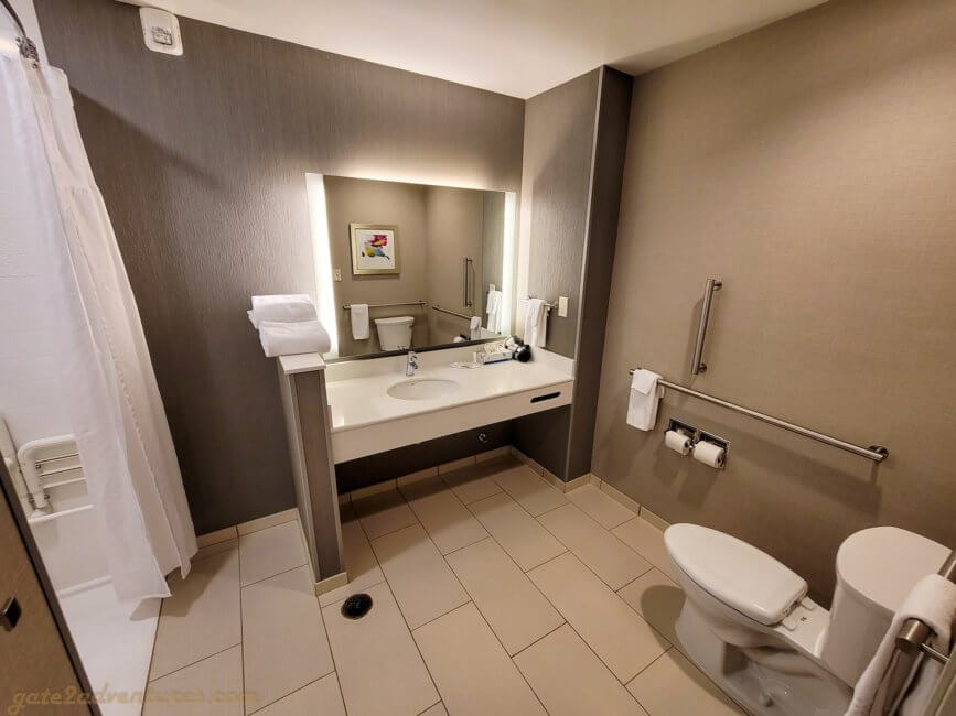 As mentioned earlier, I had to go back to the same place for work reasons again. I booked a regular King room and when I checked in, I got a handicapped room but with a King bed. I didn’t mind at all. Usually, handicapped rooms have more space and have a more open floor plan.