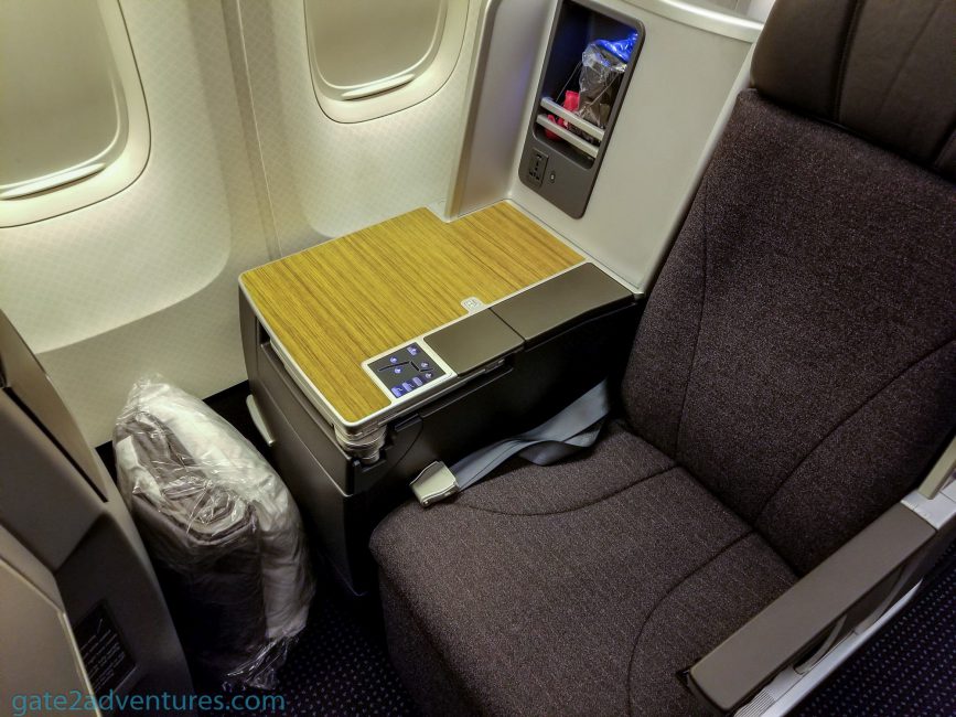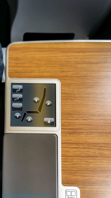 After the meal service, I took some time to take a nap and about 3/4 into the flight I felt kinda hot. The downside on this plane is, that it has no separate air vents above your seat as you might be used to from other planes. It seems the cabin heated up a little bit throughout the flight. That’s at least how it felt for me. The seat controls are right next to the seat itself and are touch sensitive. If you try to use them, they sometimes don’t work very well. However, if you put your arm on the console with the controls, the controls work and you might activate them accidentally. If you use the blanket when you take a nap, put it between the controls and your arm and the seat controls won’t respond anymore as they are capacitive.
