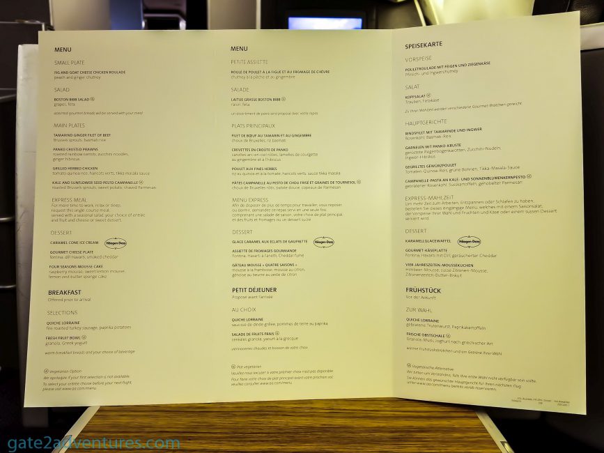 A short while into the flight the crew started their service. For some reason, the wine list was missing on the menu. Even the FAs were surprised about that. On my return trip from Zurich to JFK, they added an extra sheet with the wine selection.
