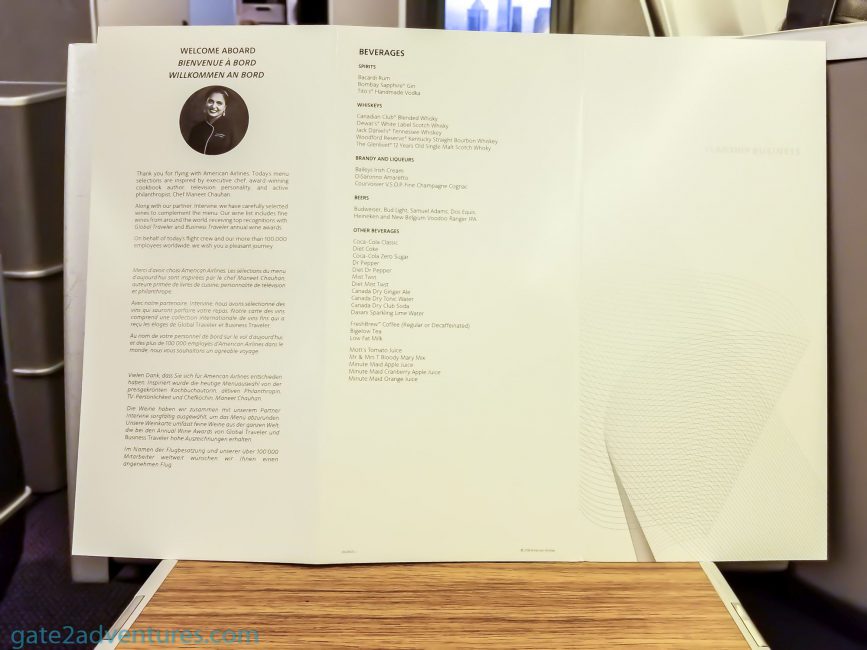 I like the food American Airlines offers in Business and First Class in general. This flight was no excuse. As usual good food and well prepared.