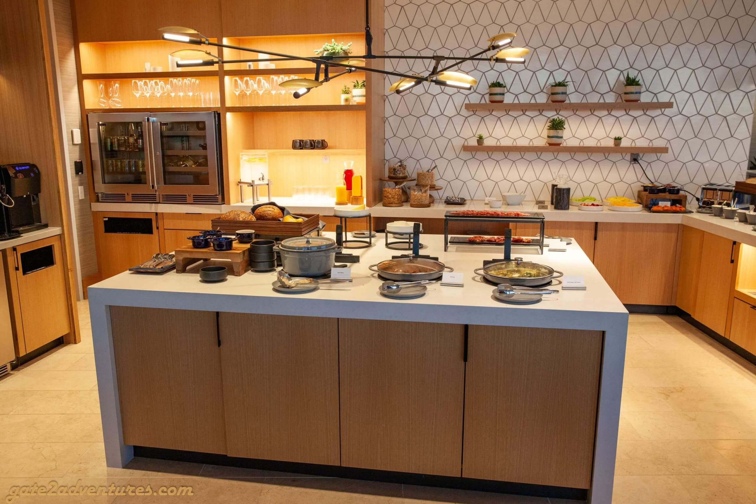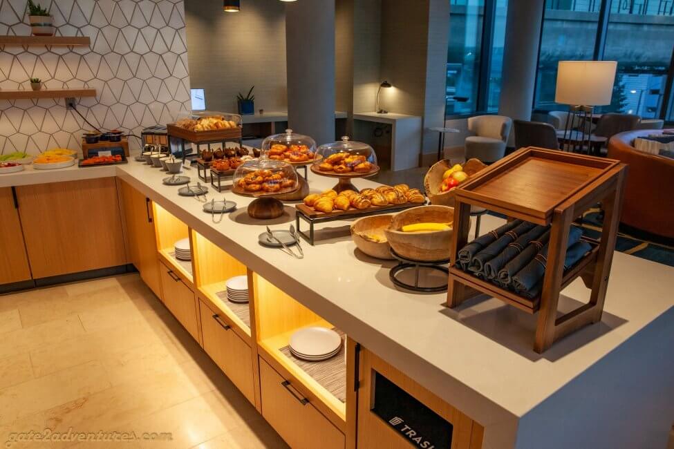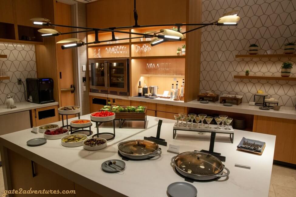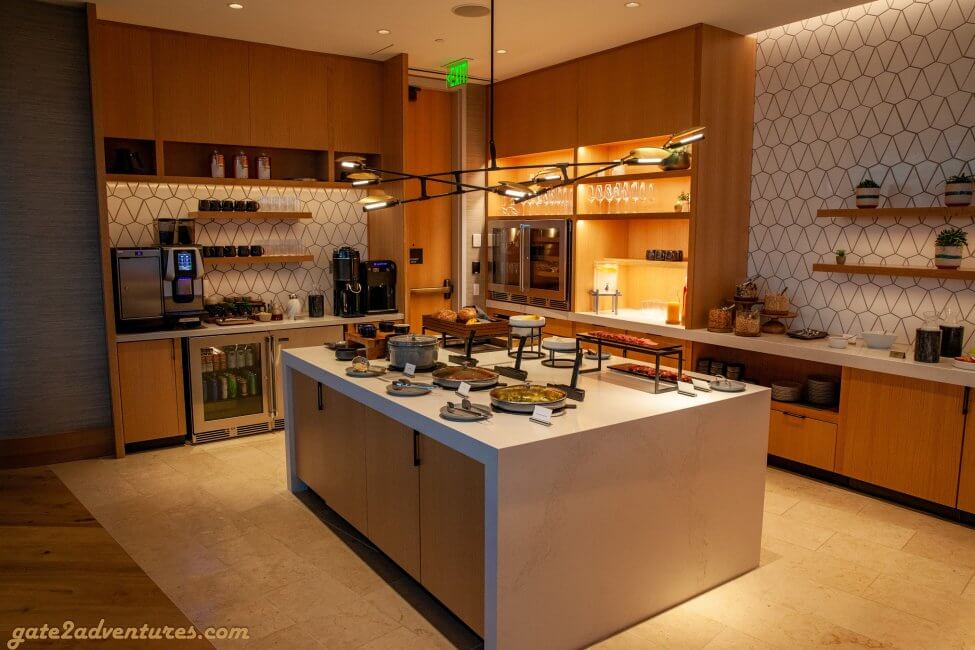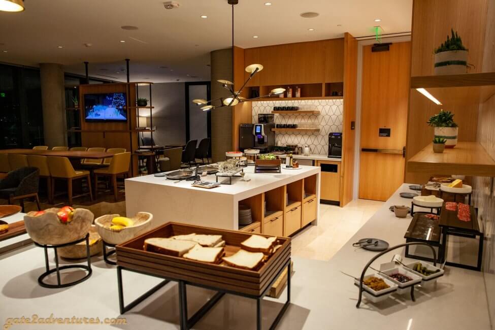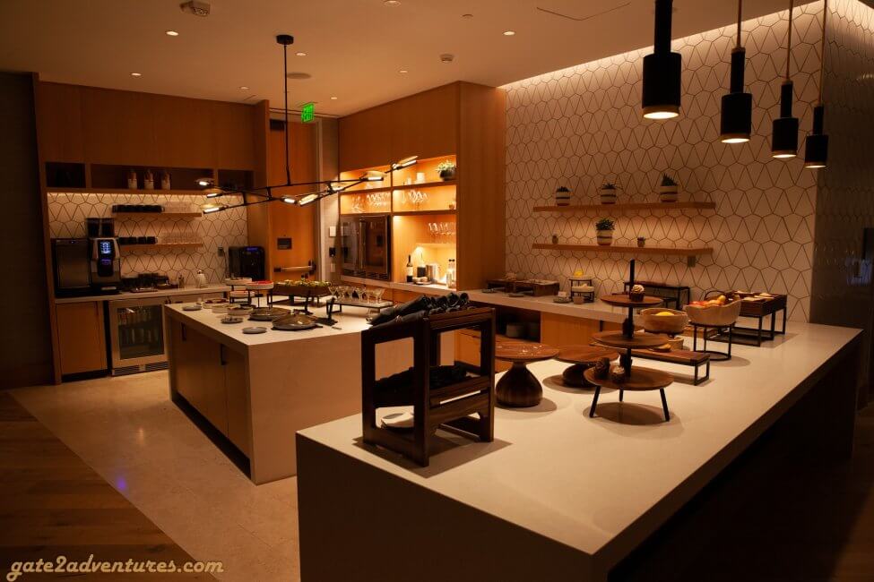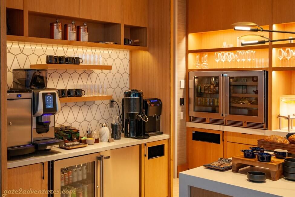 On the other side, there is a good selection of other foods and snacks. I never left hungry. One of the best things about Hyatt’s club spaces is the endless supply of coffee. Not just regular coffee, it’s one of these fancy coffee machines where you can select all kinds of brews like cappuccino, latte,… The evening service is pretty great as well and has good options including a big wine selection which is available for a small charge.