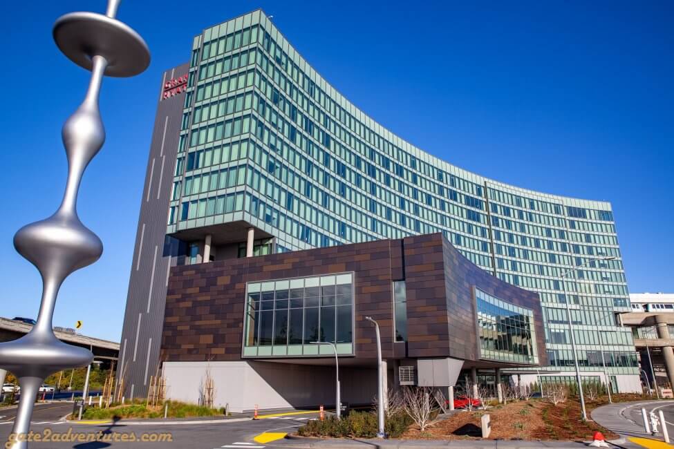 As the name suggests, the Grand Hyatt at SFO is located right next to the airport and is the closest airport hotel in San Francisco. There is even a dedicated AirTrain stop just for the hotel. The AirTrain is the automated people mover who connects all the terminals, parking garages, and rental car facility. This makes it super easy to get to the hotel. Just follow the signs for AirTrain and board the red line train. This is the fastest way to the hotel, no matter at what terminal you arrived. Because of the proximity to the airport, this hotel is also perfect for long overlays between flights. The hotel offers only valet parking in case you arrive by car. It’s even super easy to get to the rental car center from the hotel. Just hop on the AirTrain again.
