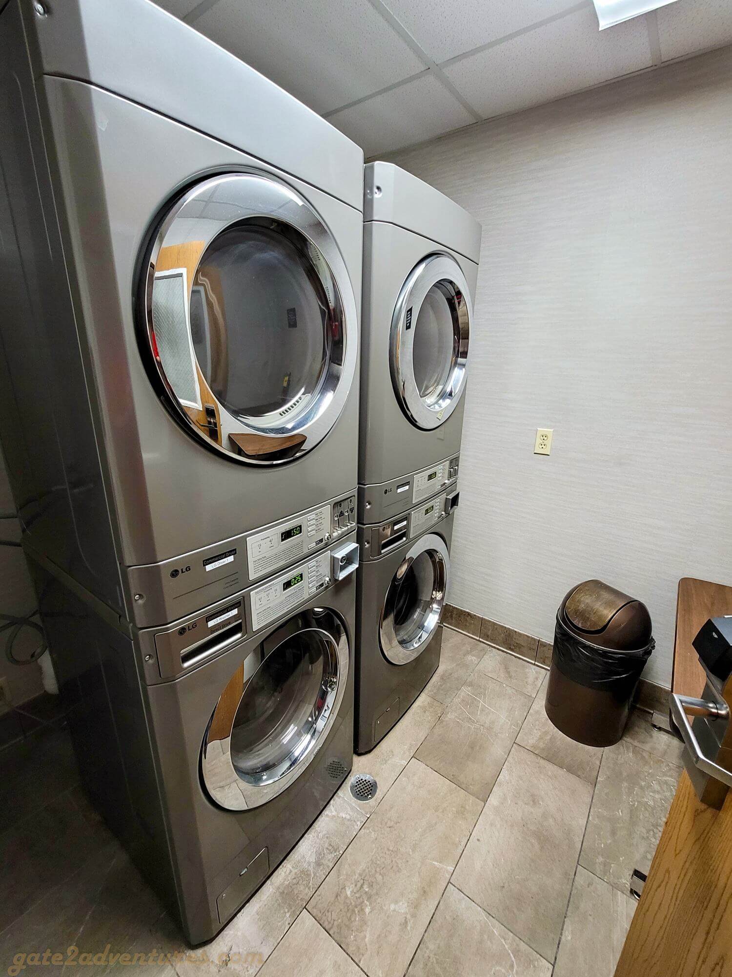 The hotel also features a well-sized laundry facility that offers two washers and two dryers. A fitness center is located along the main hallway close to the front desk. It’s a smaller fitness center but has everything for a good workout. Signs on the door require people to limit the time of use and also to not overcrowd the fitness center because of the Covid19 pandemic.