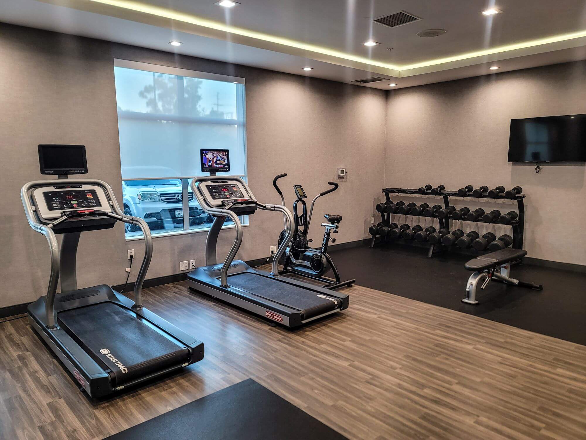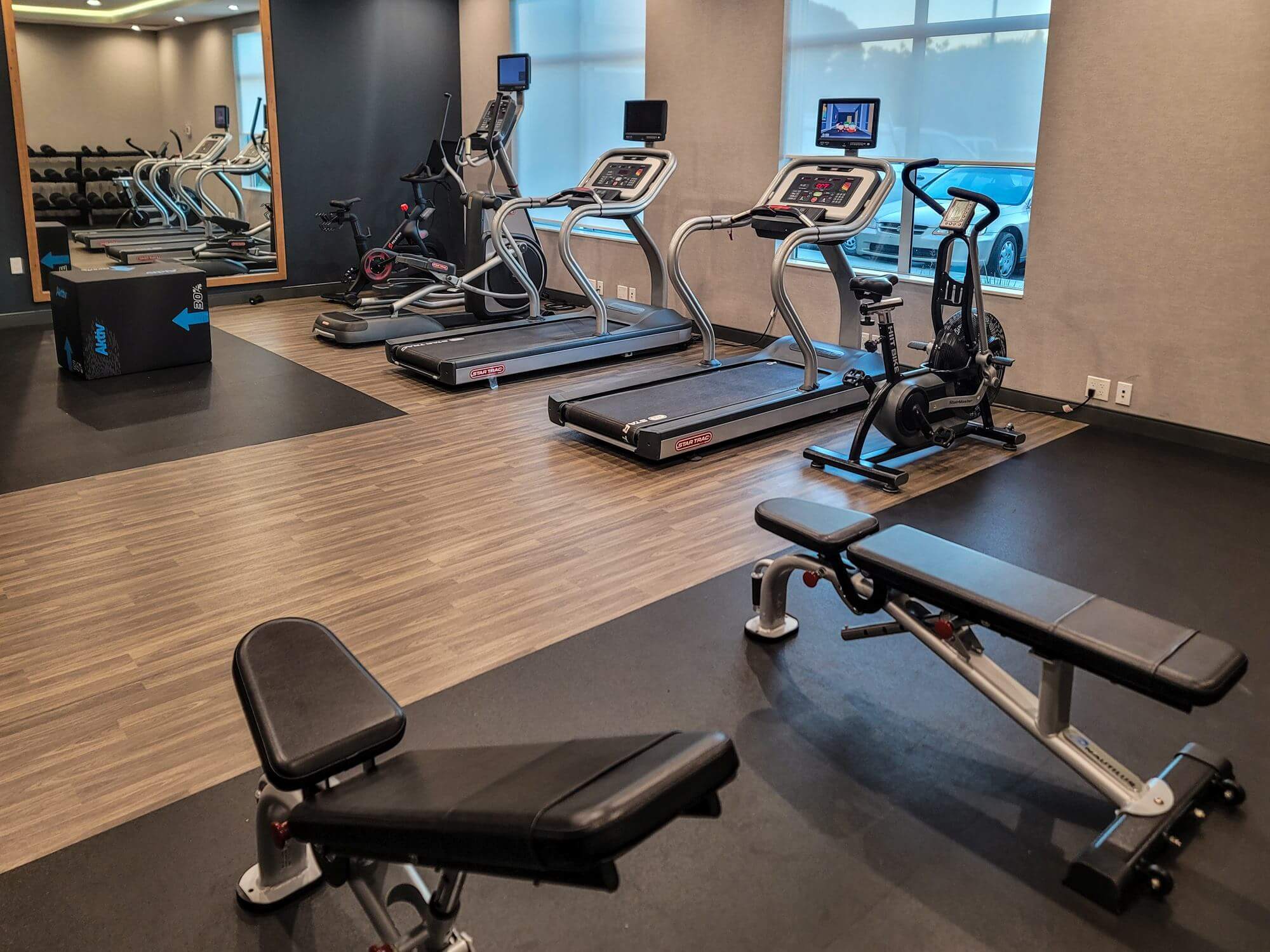 The fitness center has a decent selection of workout equipment, Nothing fancy, just a regular fitness center.