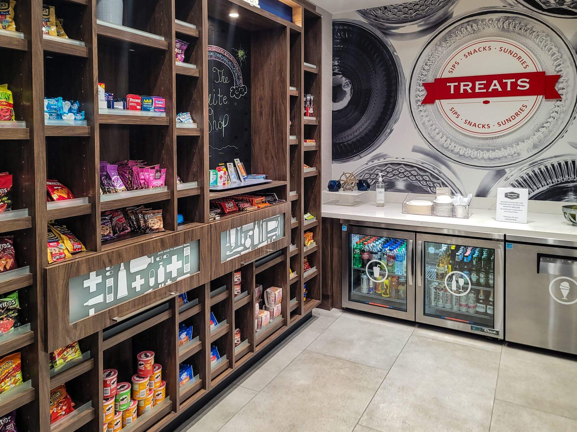 There is a large convenience store next to the front desk with lots of items to choose from. Perfect for a quick snack or if you are thirsty. They have other miscellaneous stuff as well. Best thing is that they also have plastic utensils there, if your “favorite” food delivery service forgets again to bring utensils when you expressively ordered them.