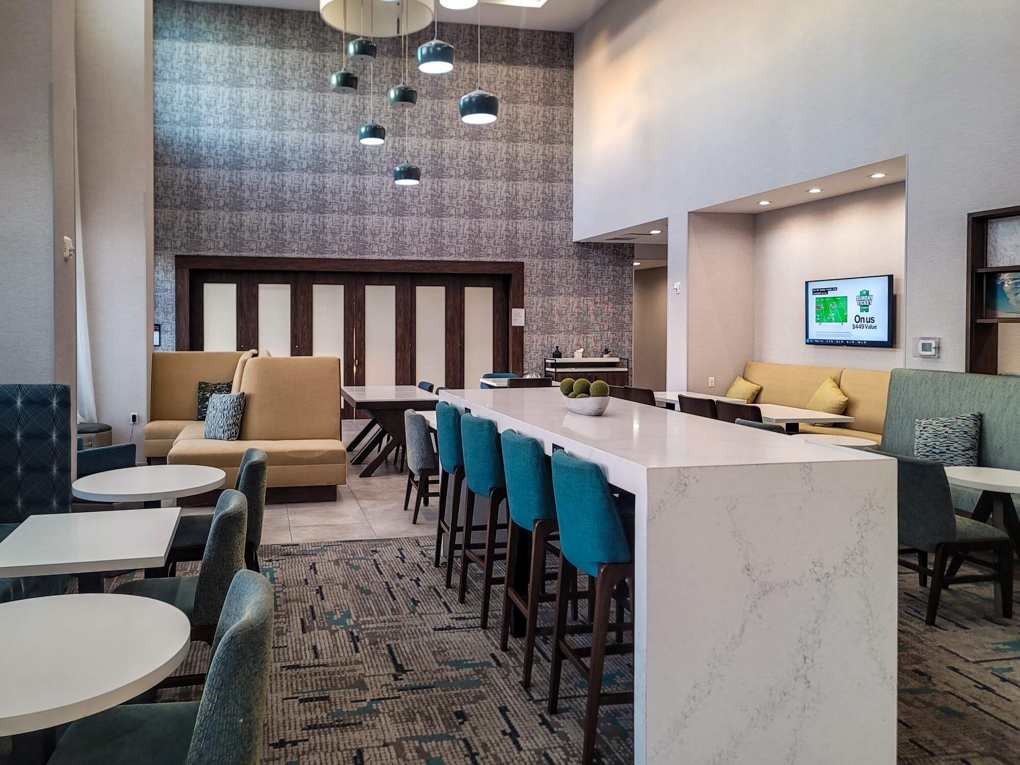 The lobby is mainly comprised of the seating area for breakfast which can be used throughout the day. There are a few meeting rooms on the first floor of the hotel. The rest of the lobby is part of the front desk space.