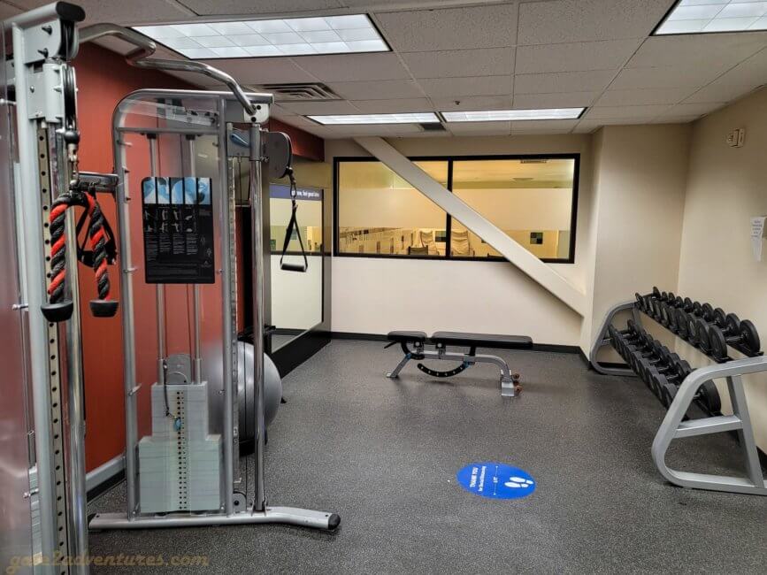 One level below, in the basement, you find the fitness center which has a pretty good size and the usual workout equipment. Next door to the fitness center is a small whirlpool. Both were open for use during my visit. To get to the basement you can use the stairs from the lobby or take the elevator.