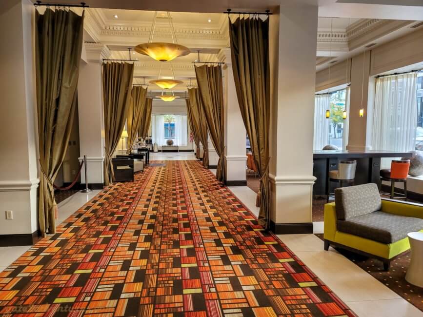 The receptionist explained the amenities of the hotel to me and the “Covid-Situation” at the hotel, like their breakfast service. I asked how parking would work, and she told me I can park where I am right now as the bus stop is currently not used and she told me that I can park at any of the passenger loading zones if I am comfortable with leaving my car there. Alternatively, I can park in the parking garage behind the hotel, but she told me that all of the spots are probably taken, and I would probably have to park in the public parking garage next to the hotel garage. I was fine with leaving my car there as this made it easier to unload my luggage with one of their luggage carts. The receptionist also told me I could check back in the morning to get a monthly pass for the public parking garage.