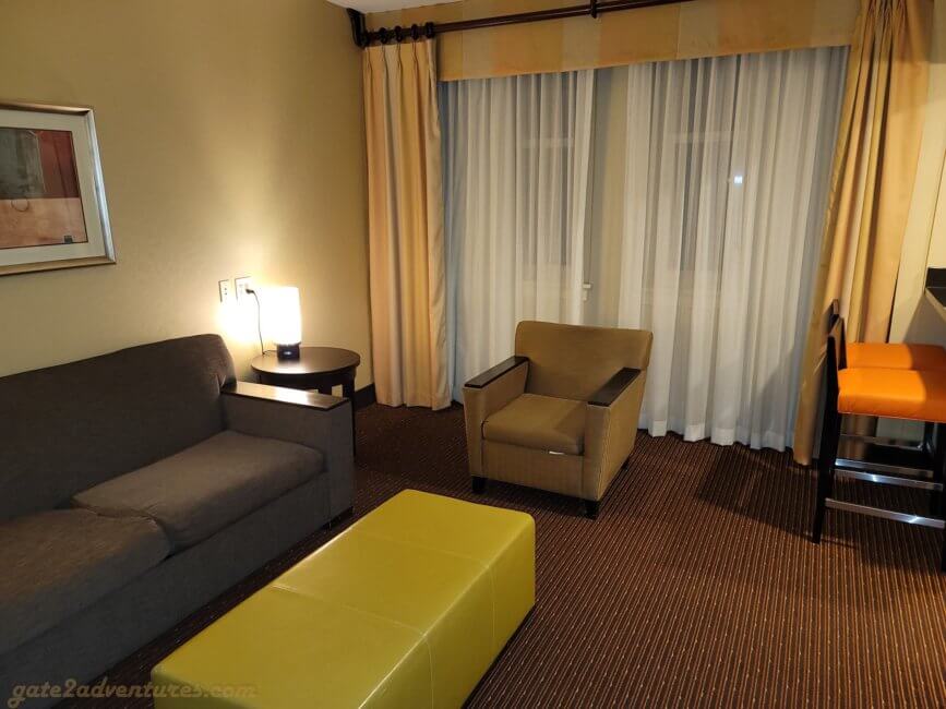 I walked through the main entrance into the lobby and checked in. When I walked in the social distancing markers on the ground were clearly visible as well as a hand sanitizer station and the plexiglass window at the front desk. Checking in was quick and easy, as I would expect it from a chain hotel.