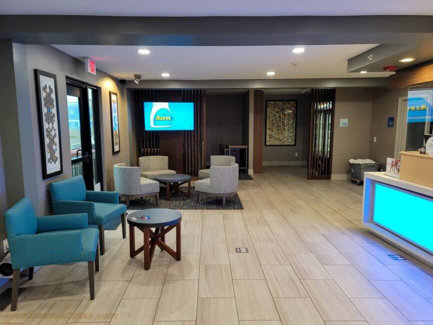 The Holiday Inn Express Lompoc is located on the northern end of the city next to Highway 1. There are a few hotels in this area as well as many restaurants and shops. Highway 1, also known as H Street in Lompoc, is a very busy road going through town. The location of the hotel makes it easy to get to the hotel and wherever you need to go. However, it’s not close to the city center and you would have to drive there. Parking is free throughout the city and readily available.