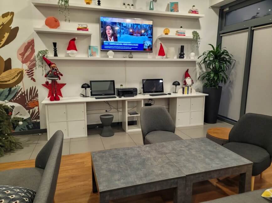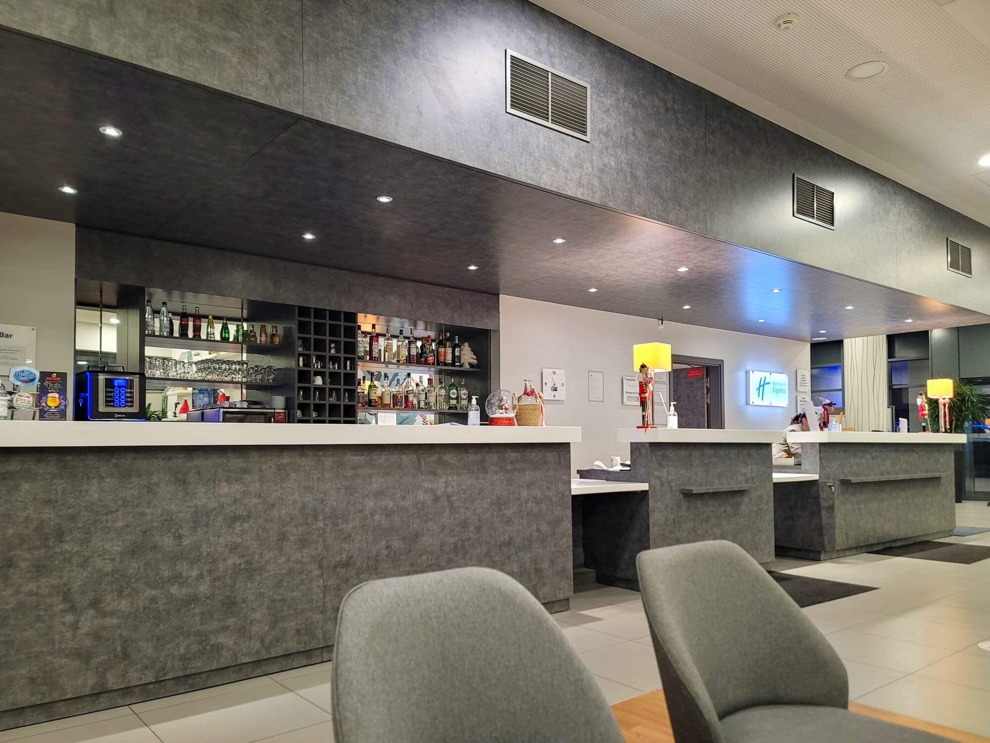 The lobby at the Holiday Inn Express Strasbourg – Centre comes with lots of seating options. Some right by the main entrance and further down, close to the bar. At that location you will also find a pool table which is covered with a blanket during the morning and is open for everyone to use in the afternoon and evening.