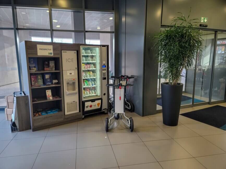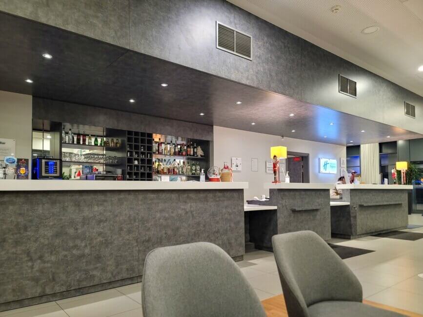 The lobby bar only offers drinks. Alcoholic and non-alcoholic but nothing to eat. No food at all. There is a vending machine near the main entrance, where you can get some small snacks and sweets, but that’s about it.